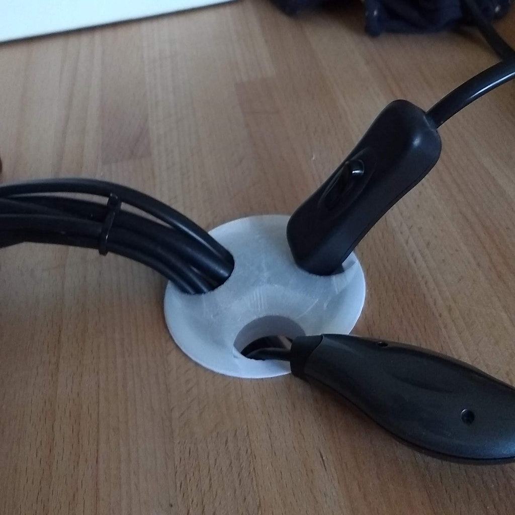 Detta kabeluttag med lock är utformat för att skapa ordning på ditt skrivbord. Det passar i ett 62 mm hål och ger ett diskret sätt att leda kablar genom skrivbordet. Genom att använda denna lösning undviker du synligt kabeltrassel och håller dina kablar samlade och skyddade. Locket hjälper till att dölja öppningen när den inte används eller när färre kablar behöver passera igenom. En effektiv kabelorganisatör på skrivbordet som bidrar till en prydlig och funktionell arbetsyta. Den kan också fungera som en praktisk kabelhållare.