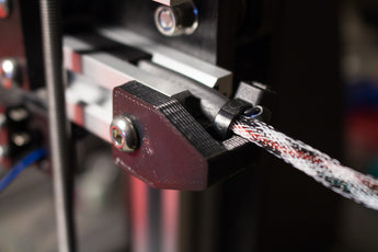Systemet inkluderar kabelklämmor som enkelt snäpps in i spåren på V-spårsprofilerna för att dölja kablar inuti. Dessa klämmor håller kablarna diskret undanstoppade, vilket bidrar till ett rent och professionellt utseende för din skrivare.
