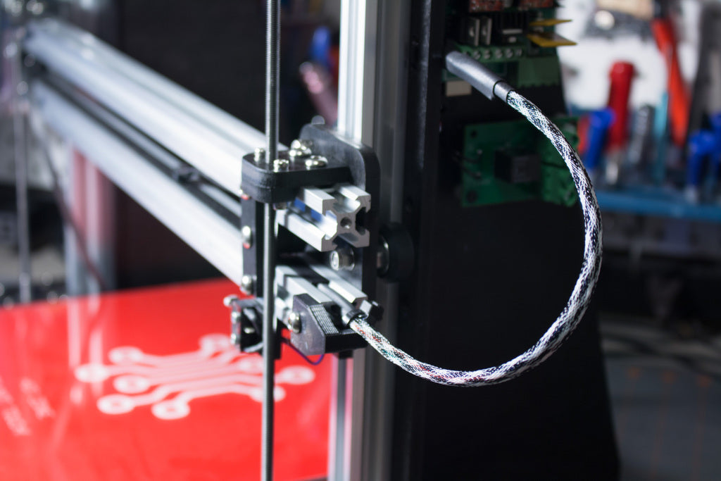 En smart spårplatta som glider in i änden av profilen kompletterar systemet genom att fånga upp och dölja mindre trådar. Denna lösning förbättrar inte bara estetiken utan även den övergripande funktionaliteten och säkerheten för din MakerFarm i3v-skrivare.