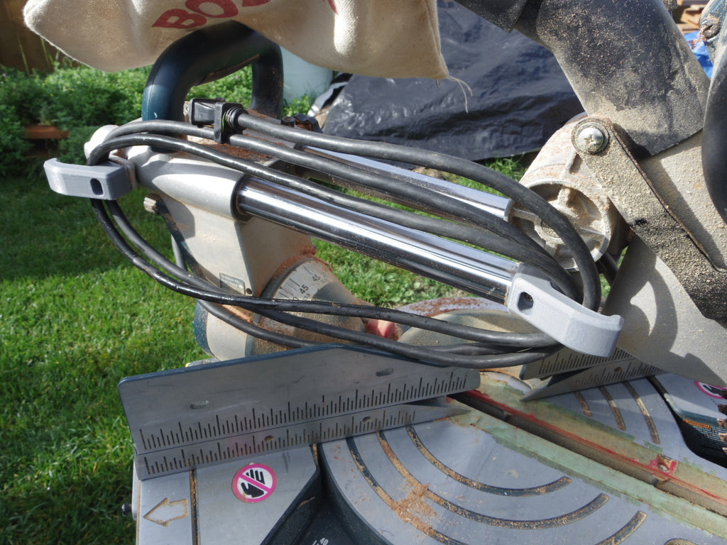 Denna uppsättning kabelklämmor har specialutvecklats för din 10-tums Bosch-kap- och geringssåg för att förbättra organiseringen av maskinens kablar. Lösningen är utformad för att ersätta de ursprungliga klämmorna, som ofta är benägna att spricka eller gå sönder med tiden. Genom att använda dessa förbättrade kabelklämmor kan du bidra till en snyggare och säkrare arbetsyta, eftersom kablarna hålls borta från rörliga delar och din arbetsyta.