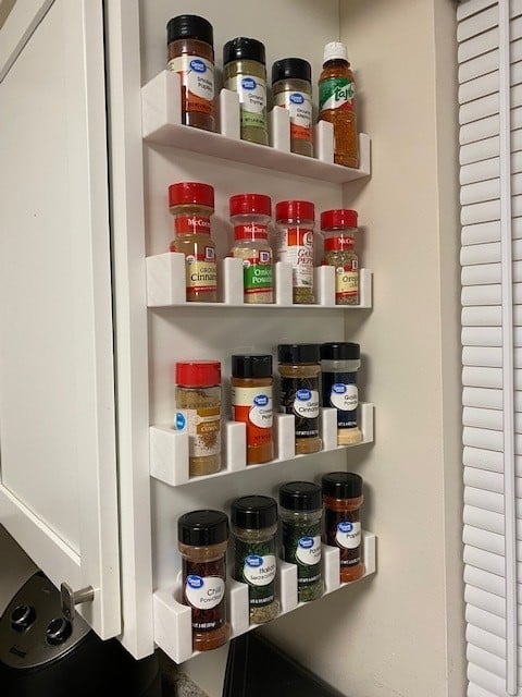 Organisera ditt kök med detta praktiska kryddställ som enkelt kan monteras på sidan av de flesta skåp. Den är designad för att passa populära kryddbehållare som Great Value, Stonemill och McCormick, vilket gör den till en idealisk lösning för både små och stora kök.