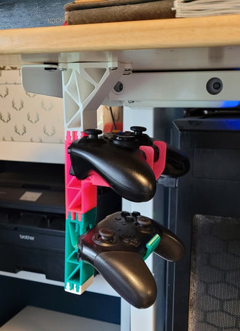 Optimera din arbetsyta eller spelyta med denna modulära handkontrollhållare, utformad för att diskret monteras under ditt skrivbord. Denna innovativa lösning frigör värdefullt bordsutrymme och håller din handkontroll organiserad och lättillgänglig när du behöver den. Hållaren är helt kompatibel med befintliga handkontrollfästen från den ursprungliga stativdesignen samt populära remixer, vilket säkerställer sömlös integration i din nuvarande installation. Den är också särskilt väl lämpad för förvaring av Xbox 360-handkontroller.