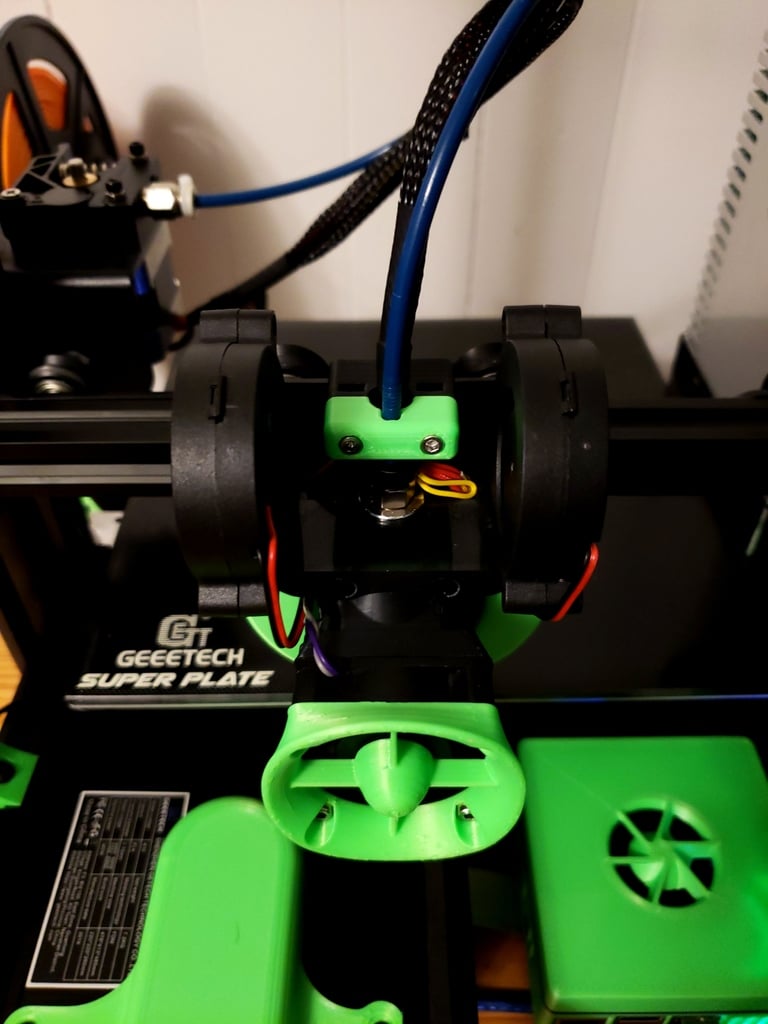 Detta anpassade fäste erbjuder en robust lösning för att förbättra din Geeetech A10 eller Geeetech A30 3D-skrivare. Det ger en stabil plattform för att integrera en E3D V6 hotend , känd för sin prestanda och tillförlitlighet inom 3D-utskrift. Designen stöder också installation av dubbla 5015-fläktar , vilka är avgörande för effektiv kylning av utskriften, vilket resulterar i renare och mer exakta utskrifter. Fästet inkluderar också ett integrerat kabelstöd , vilket bidrar till bättre kabelhantering och en mer organiserad installation. För användare som vill lägga till automatisk bäddnivellering finns det också möjlighet att montera en BLTouch- sensor. Denna uppgraderingslösning ger större flexibilitet och förbättrade utskriftsresultat genom att optimera hotend- och kylsystemen för din skrivare.