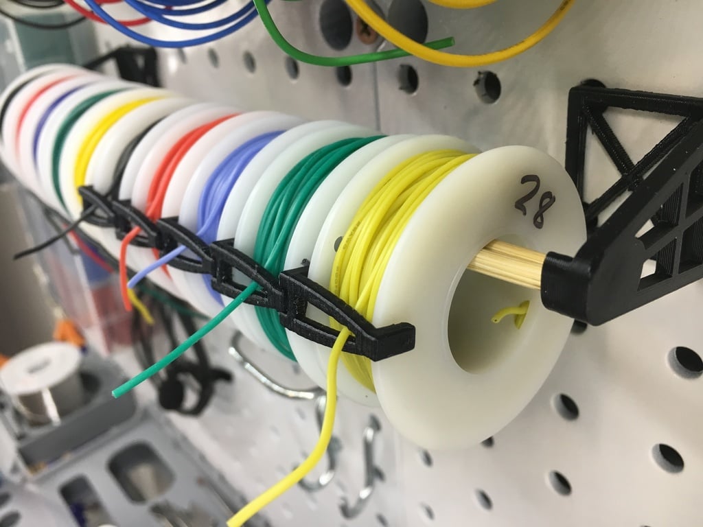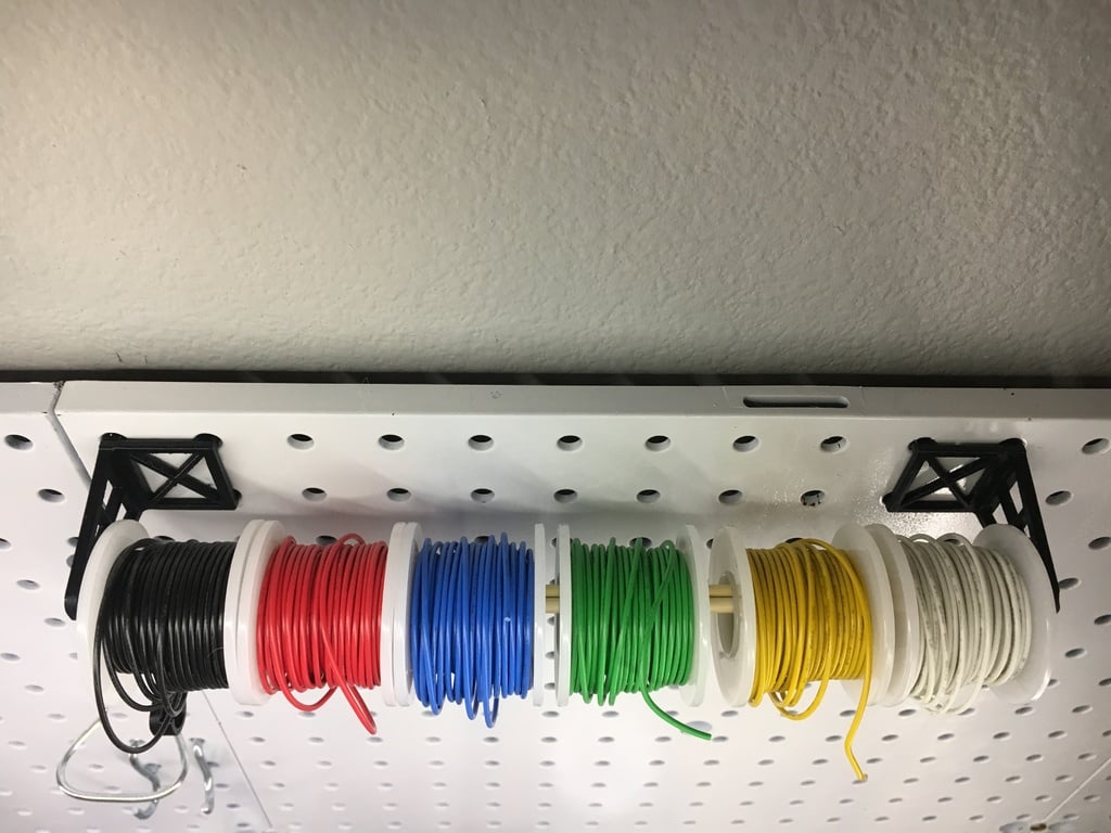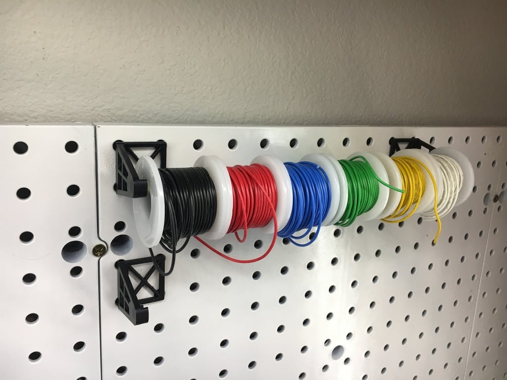 Hållaren är kompatibel med de flesta vanliga pegboards och ger ett stabilt fäste. Du kan enkelt anpassa den genom att använda vanliga trästavar som spett eller ätpinnar (med en diameter på mindre än 9 mm) som axlar för dina spolar.