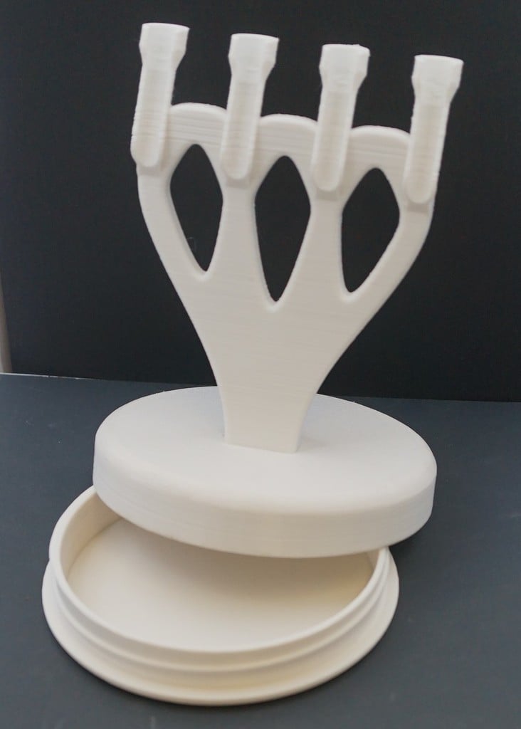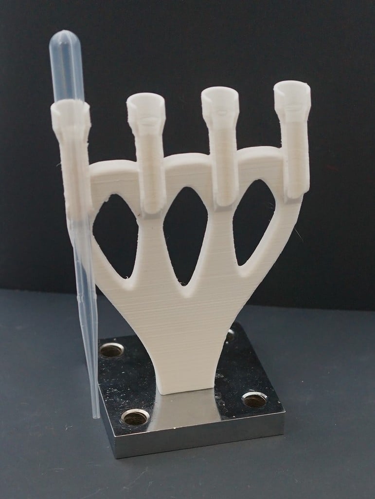 Hållaren kan enkelt fästas på en metallplatta med en M3-skruv, så att du kan anpassa din inställning efter behov. Den integrerade basen kan tryckas i två delar, så att du kan fylla den med sand eller annat material för att öka stabiliteten, vilket gör den till en flexibel och användbar lösning för laboratoriebruk.