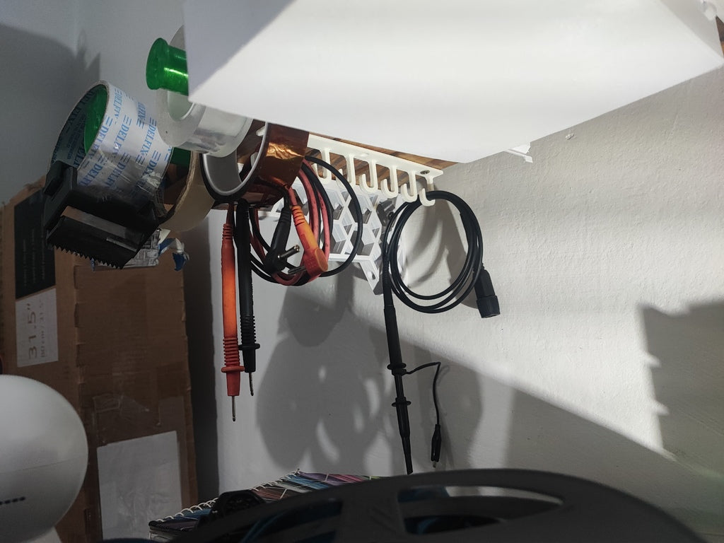 Modellen erbjuds i två varianter, med antingen 6 eller 8 krokar , så att du kan välja den lösning som bäst passar dina kabelhanteringsbehov. Denna kabelhållare är ett enkelt och effektivt sätt att förbättra ditt dagliga arbetsflöde och hålla dina viktigaste kablar lättillgängliga.