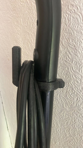 Kroken utvecklades ursprungligen som en ersättning för en defekt del på en ångmopp, men dess mångsidighet gör att den kan användas på en mängd olika apparater med en rördiameter på cirka 25 mm. Även om modellen är utformad för denna standardstorlek kan den enkelt anpassas till andra dimensioner efter behov. Fästet sker med en robust limbaserad metod, vilket säkerställer en hållbar och pålitlig montering som håller din sladd säkert på plats.