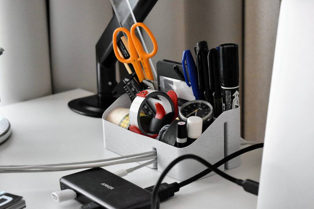 Skapa en snygg och effektiv arbetsyta med denna funktionella skrivbordsorganisatör. Den är utformad för att hålla dina småsaker som pennor, anteckningsböcker och kontorsmaterial organiserade, och erbjuder även smart kabelhantering. Med en inbyggd kabelhållare säkerställer den att dina viktiga sladdar och kablar, som telefon- och datorladdare, alltid finns inom räckhåll och inte ramlar ner. Denna praktiska sladdhållare eliminerar kabeltrassel och bidrar till ett mer organiserat skrivbord. En idealisk skrivbordsorganisatör som förvandlar ett stökigt område till en snygg och produktiv miljö.