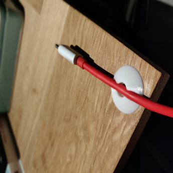 Oavsett om du använder den på skrivbordet hemma, på hemmakontoret eller på jobbet, hjälper den här kabelhållaren dig att hålla koll på dina viktiga anslutningar. Den är också lämplig att använda i sovrummet för att hålla laddningskablar inom räckhåll och snyggt organiserade. Med sin enkla design passar den in i de flesta inredningar och fungerar som en diskret men effektiv lösning för att minimera kabeltrassel.