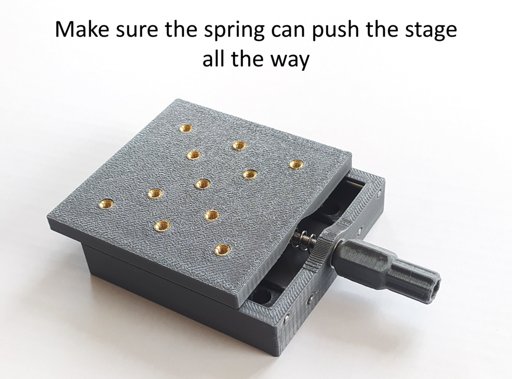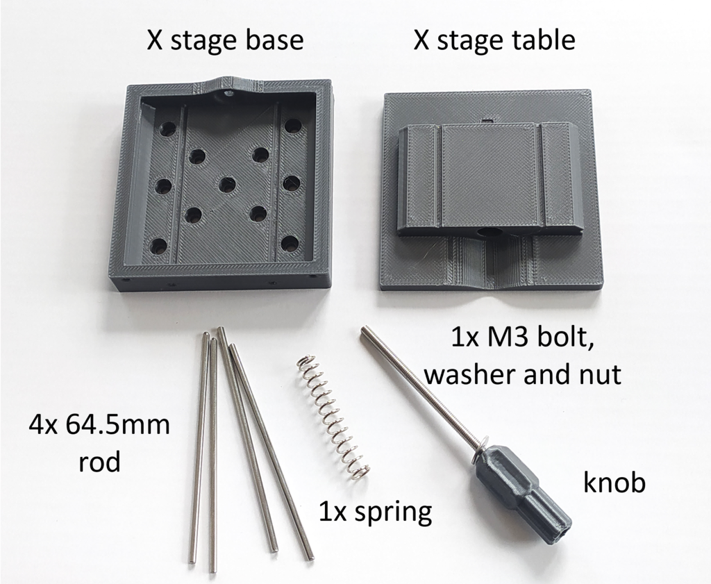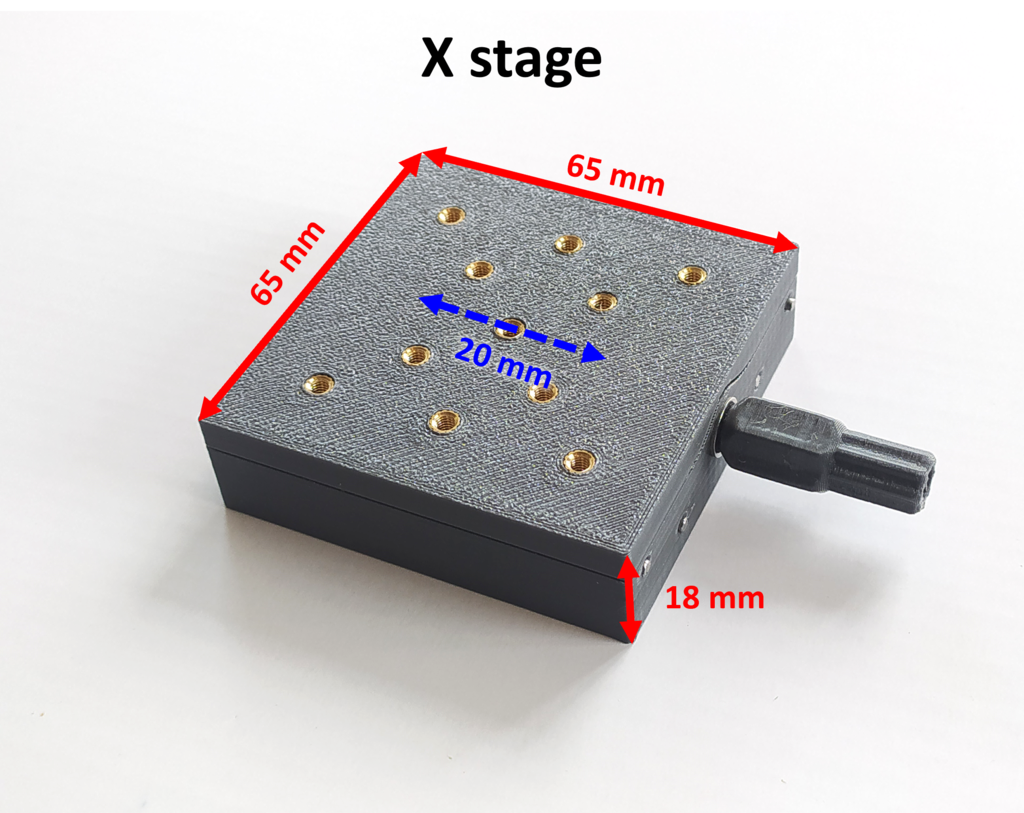 Det tryckta linjära steget är en praktisk lösning för precisionspositionering med en noggrannhet på upp till 10 mikron. Designen är idealisk för projekt där exakta rörelser är viktiga. Den använder 3D-tryckta delar tillsammans med 2 mm metallstänger, en 40 mm fjäder och en 55 mm M3 bult med mutter och bricka för att säkerställa stabilitet och funktionalitet.