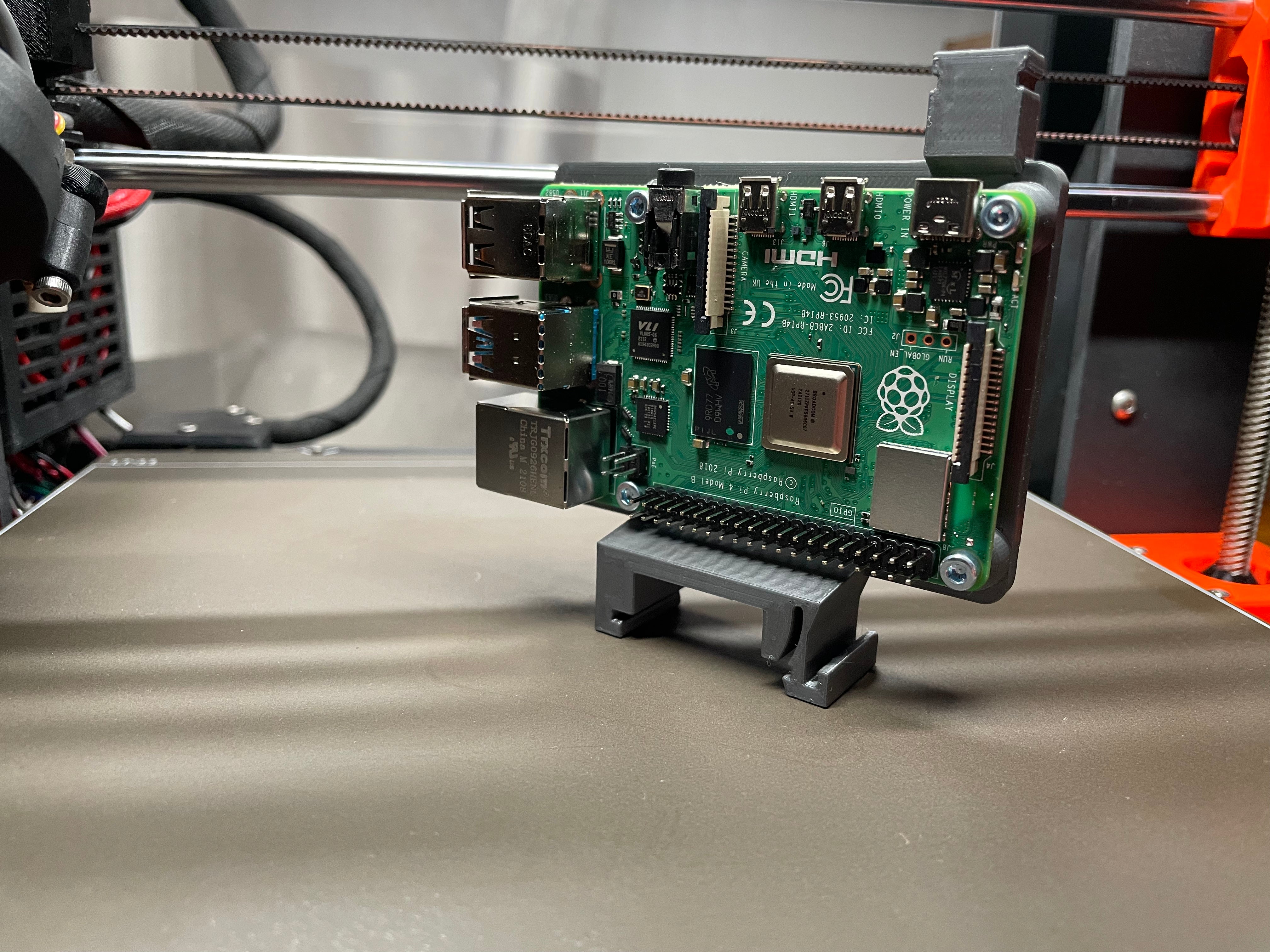 Fästena är specifikt utformade för att använda M3-nitmuttrar, vilket säkerställer en robust och pålitlig montering utan behov av ytterligare distanser. Allt som behövs för en komplett montering är fyra standard M3x10-skruvar, vilket gör installationsprocessen snabb och enkel. Detta säkerställer att din Raspberry Pi är stabilt placerad och skyddad från oönskad rörelse eller potentiell skada, även i aktiva driftsmiljöer.