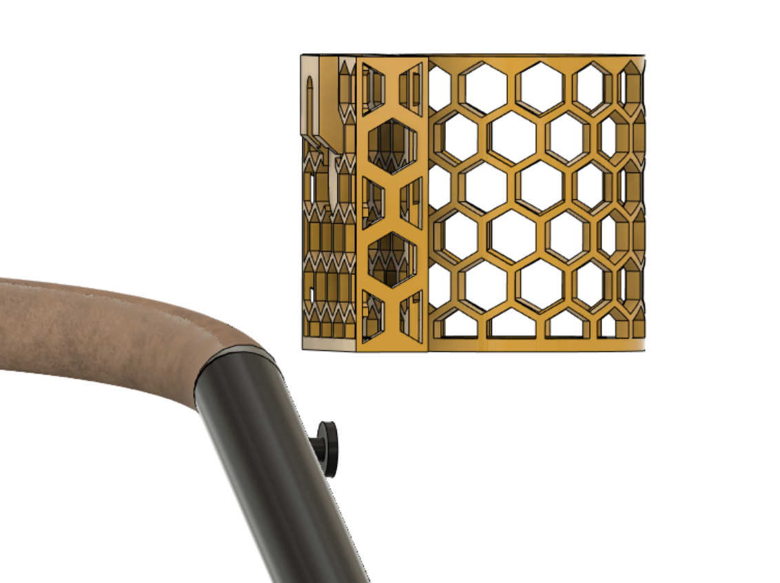 Med sin bikakestruktur ser hållaren inte bara bra ut utan säkerställer också styrka och hållbarhet, vilket gör den till ett pålitligt val för föräldrar på språng. Designen är kompakt och minimalistisk, vilket gör att den fungerar harmoniskt med din sittvagn utan att ta för mycket plats.