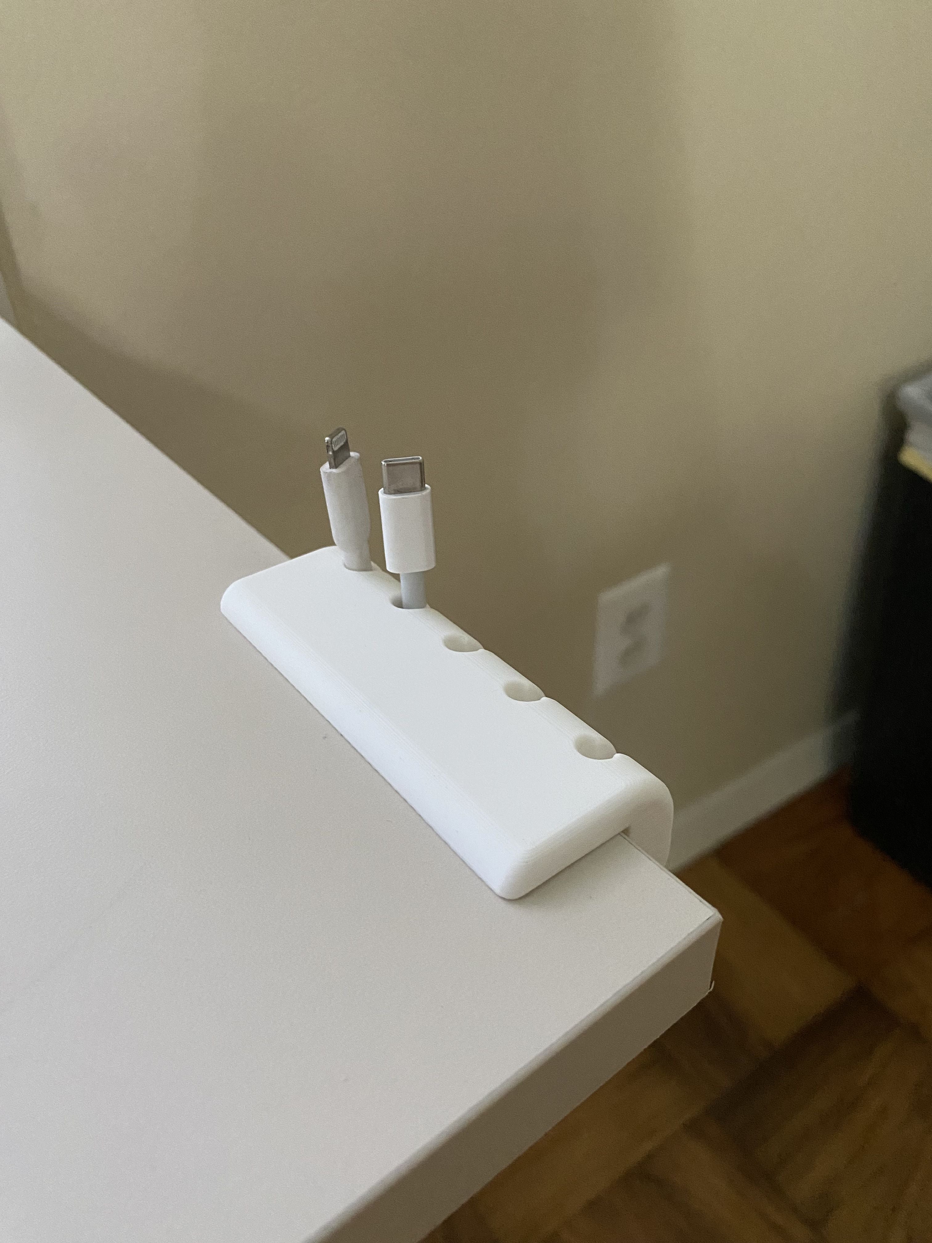 Denna praktiska kabelhållare för skrivbordet är utformad för att skapa ordning på din arbetsyta. Den är skräddarsydd för att fästas på skrivbord med en tjocklek på 20,4 mm, vilket garanterar en stabil och diskret lösning för din kabelhantering . Med denna hållare kan du enkelt samla och dra dina kablar, till exempel USB-kablar , utom synhåll och undvika röran under skrivbordet.
