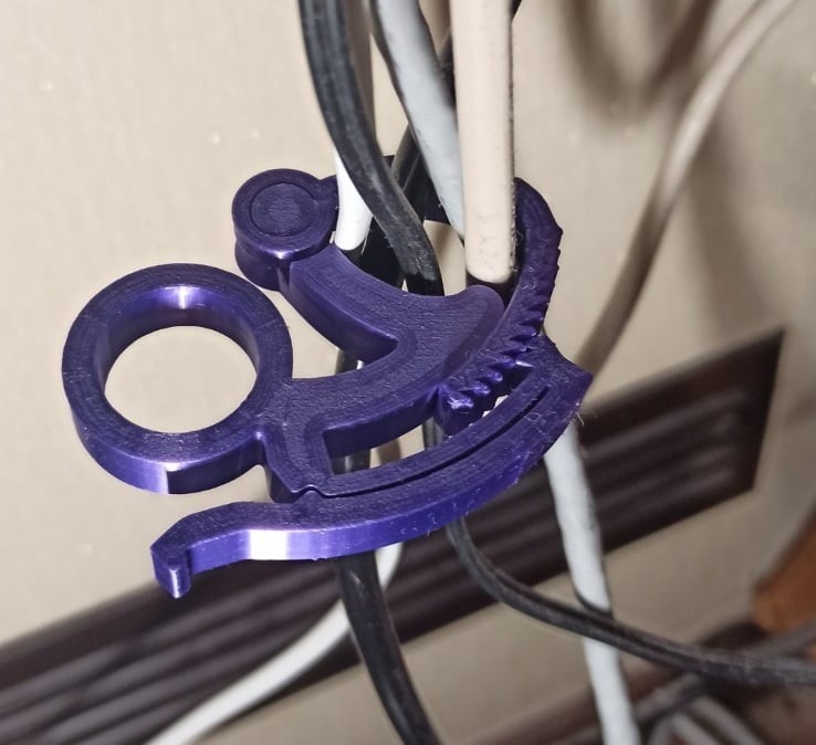 Är du trött på lösa och trassliga kablar på ditt skrivbord eller arbetsyta? Denna innovativa kabelklämma erbjuder en praktisk lösning för att hålla dina kablar organiserade. Denna kabelhållare är utformad för att skrivas ut på plats och kräver inga skruvar eller extra verktyg. Den fästs enkelt och effektivt runt dina kablar och säkerställer att de förblir prydligt buntade och på plats. Perfekt för att skapa en snygg och funktionell miljö där kabelhantering är en prioritet. Med denna skruvfria kabelklämma kan du enkelt förbättra ordningen och estetiken i vilket rum som helst.