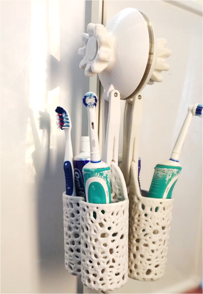 Upptäck denna funktionella badkorg med sugkopp, designad för att enkelt fästas på glas eller speglar i badrummet. Med en rejäl sugkopp av TPU och en korg av PLA eller din föredragna styv plasttyp säkerställer denna korg både funktionalitet och stil.