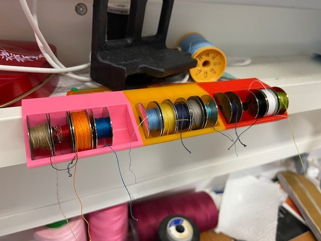 Denna sytrådshållare är den perfekta lösningen för organiserad förvaring av dina garnrullar. Utformad speciellt för att passa IKEAs Mosslanda-hylla, hjälper hållaren till att skapa ordning på din arbetsyta samtidigt som den ger dig en tydlig överblick över garnfärgerna. Med sin enkla snap-on-funktion integreras hållaren enkelt i din befintliga interiör, vilket gör den till ett praktiskt och stilrent tillskott till ditt kreativa utrymme.