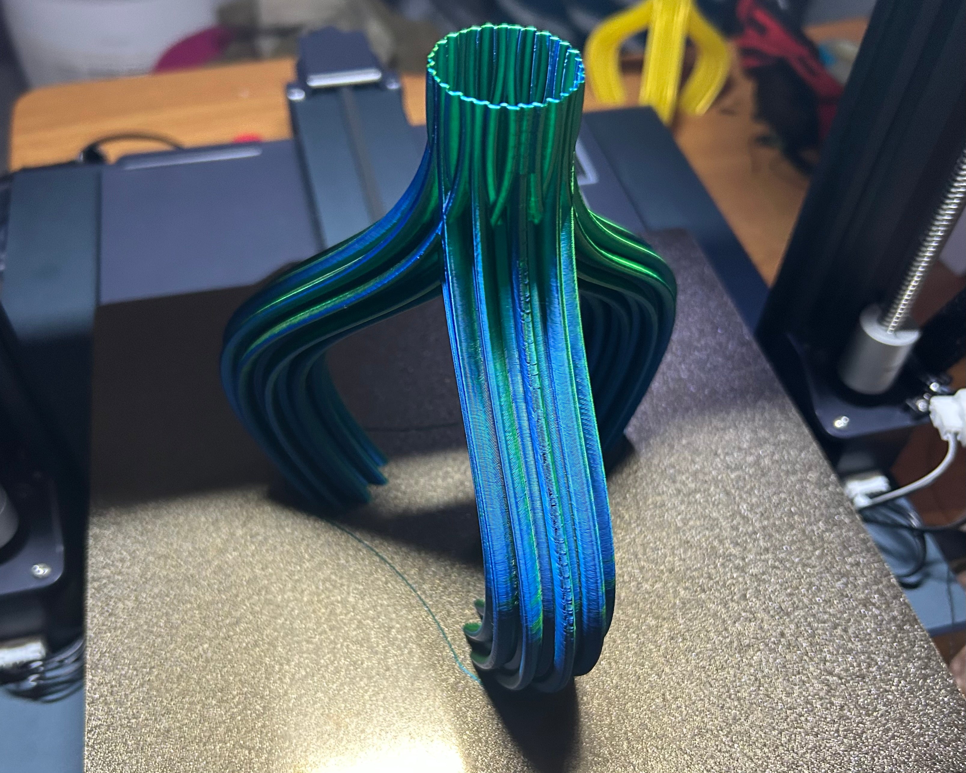 Tri-Gear vasen är en unik och stilren accessoar för ditt hem. Denna vas presenterar en innovativ utrustningsdesign som ger en modern touch till din inredning. Perfekt för att visa upp färska blommor eller som ett dekorativt element, Tri-Gear-vasen kan placeras i vardagsrummet, kontoret eller entrén.