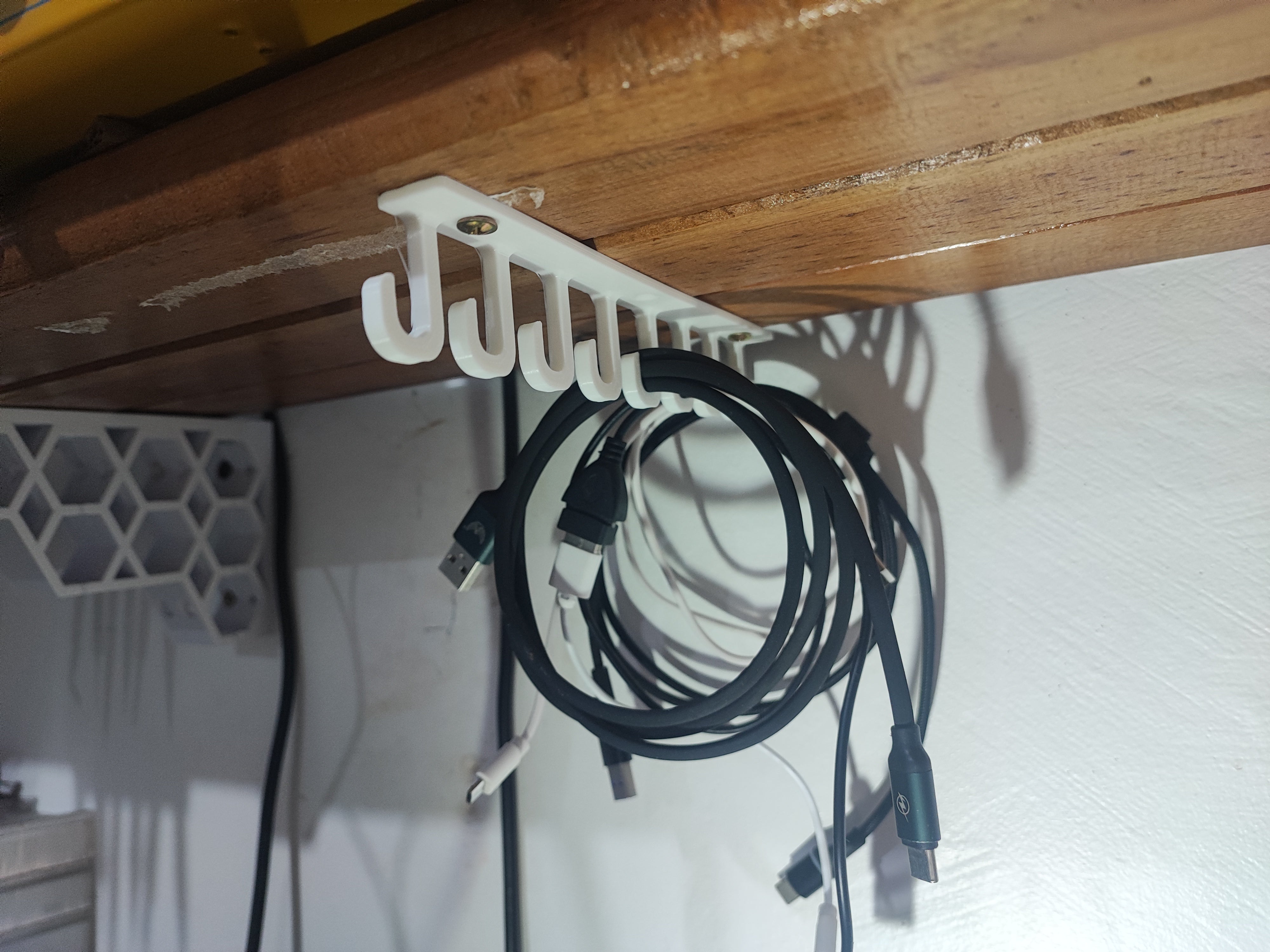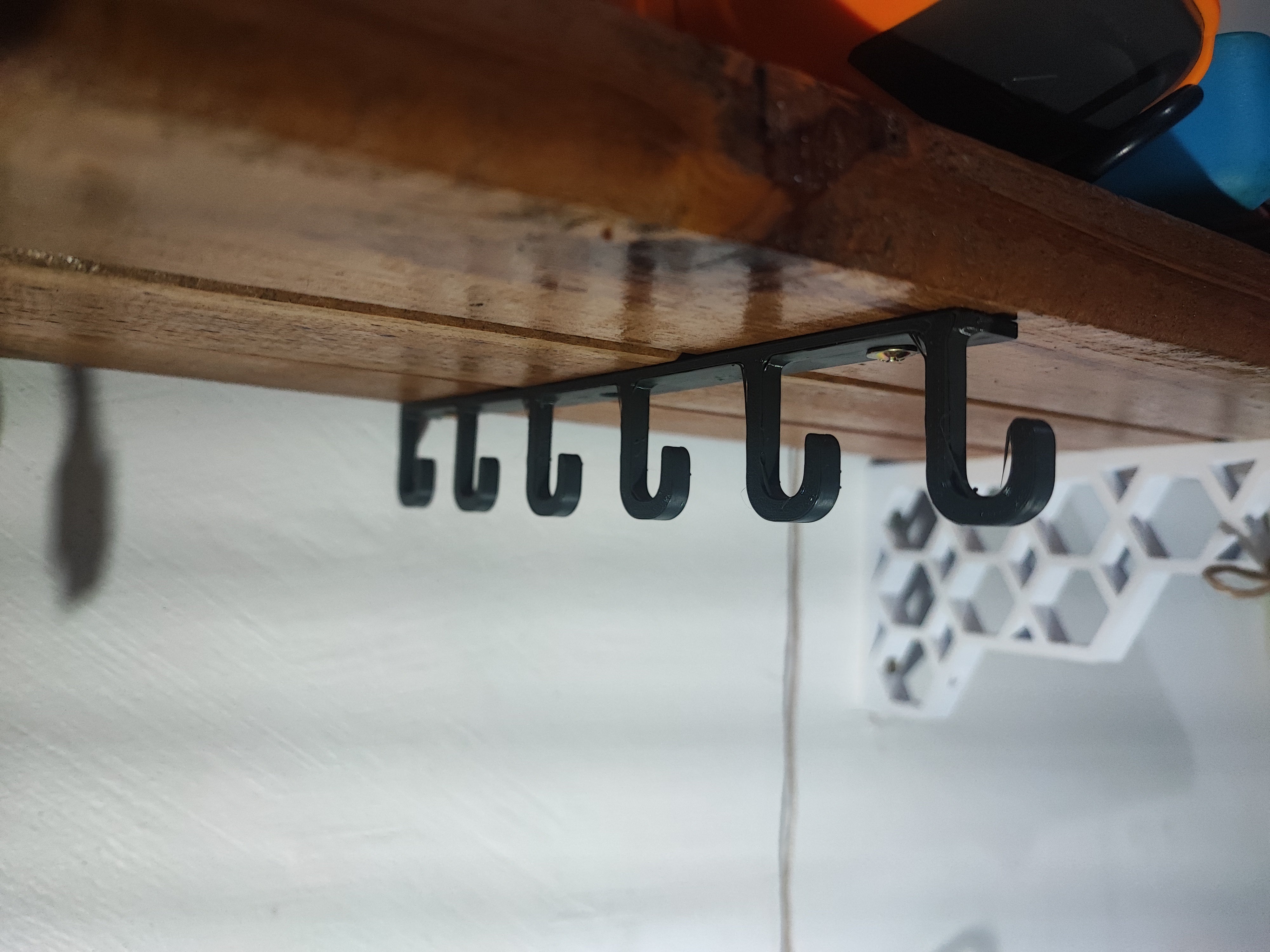 Kabelhållare och krok under hyllan