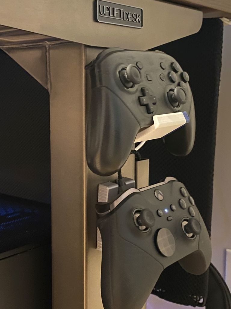 - Universella väggfästen avsedda för förvaring av konsolkontroller (t.ex. PlayStation och Nintendo Switch).