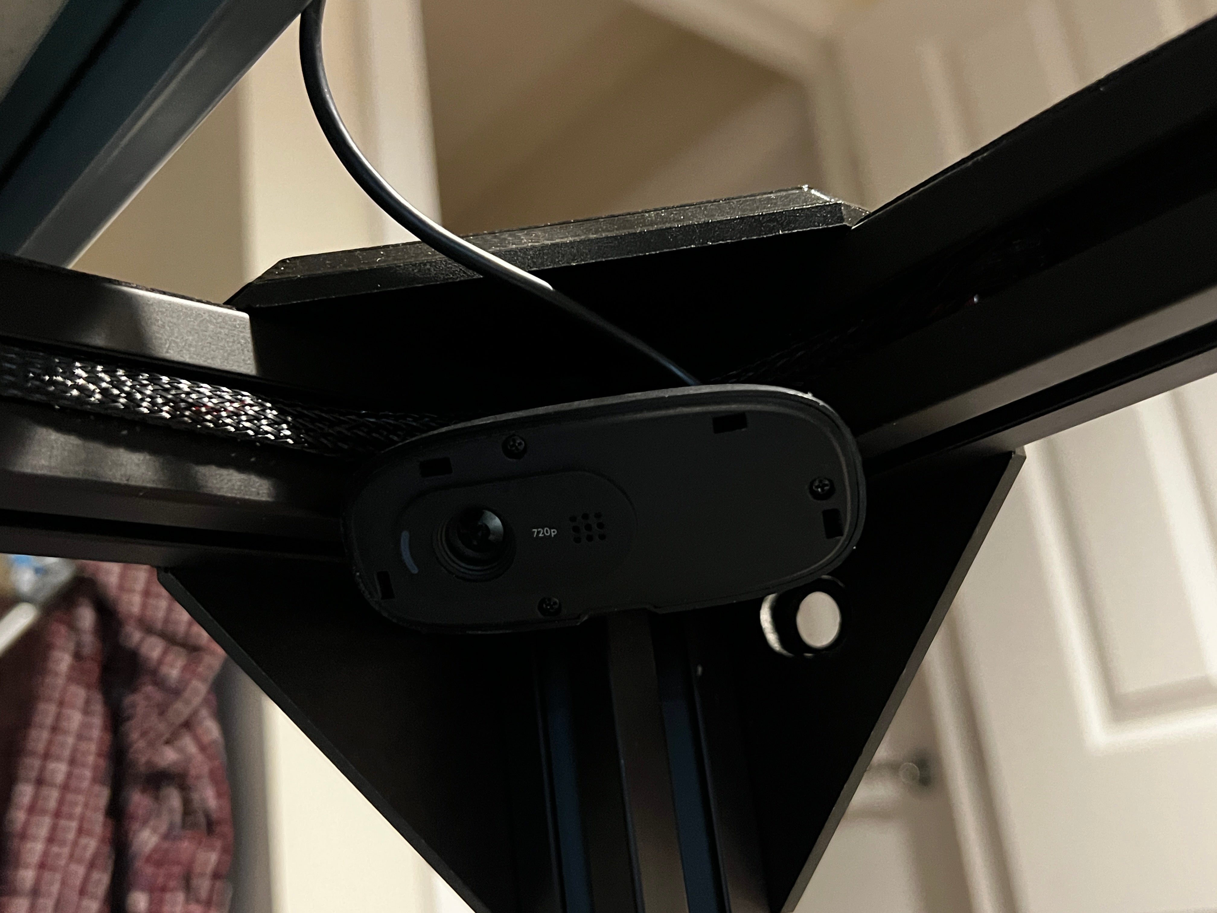 Fästet är utformat för att diskret placera kameran mellan skrivarens hörnplattor, vilket kan bidra till ett mer strömlinjeformat utseende på installationen. Monteringselementet möjliggör justering av kamerans vinkel, vilket gör att användaren kan uppnå önskad fotograferingsposition. Även om sidojustering är begränsad är detta sällan ett hinder vid avsedda monteringsscenarier.