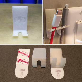Denna praktiska väggmonterade kabelhållare är utformad för att ge en organiserad lösning för dina mobiltelefoners laddningskablar. Med denna kabelhållare kan du enkelt hålla dina kablar prydliga och förhindra att de ligger och trasslar sig på bord eller golv. Det smarta klämman fästs enkelt på väggen, helst med självhäftande remsor, för en snabb och tillfällig installation. Oavsett om det är för din iPhone, Android eller någon annan mobilkabel, säkerställer detta tillbehör att din laddningskabel alltid är inom räckhåll och redo att användas när du behöver den. En effektiv kabelhållare som skapar en prydlig och funktionell miljö i alla rum.