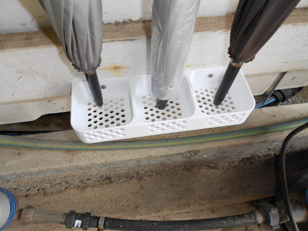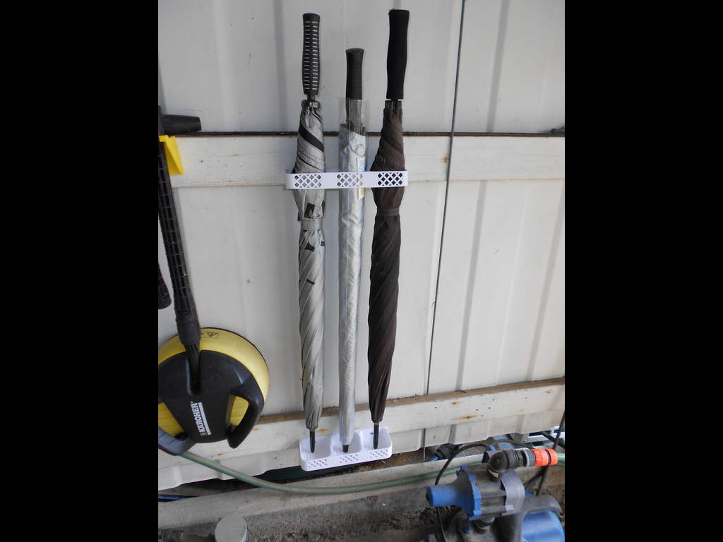 Förvara dina paraplyer effektivt med denna väggmonterade paraplyhållare, som rymmer upp till tre paraplyer. Designen innehåller två olika alternativ för vevfästet; en med dränering till golv och en med tät botten som fångar upp dropparna från våta paraplyer. Denna funktion gör det enkelt att hålla området runt hållaren torrt och snyggt.