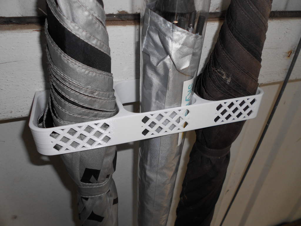 Det öppna nätmönstret på framsidan gör det möjligt att använda en skruvmejsel för enkel montering på väggen. Denna paraplyhållare är inte bara begränsad till paraplyer; den kan också användas för att förvara fiskespön, stålspön och andra liknande föremål. Den innehåller en stencil för att borra monteringshålen, vilket gör installationen ännu enklare.