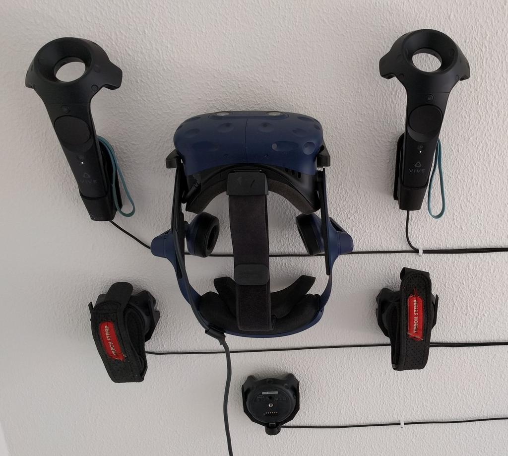 - Väggfäste som säkerställer organiserad förvaring av din Vive Tracker.