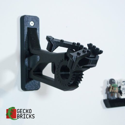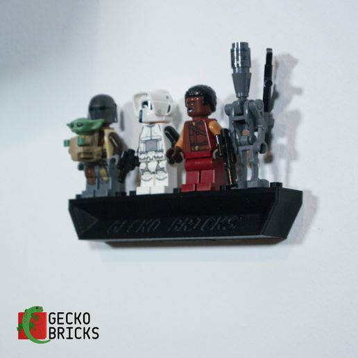 - En separat väggmonterad hållare för minifigurer medföljer, som kan fästas utan skruvar med hjälp av en självhäftande remsa.