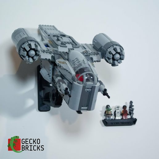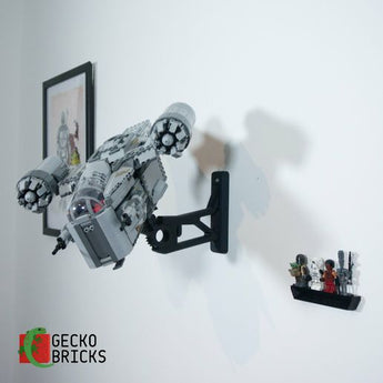 Visa din LEGO Razor Crest i åtta olika orienteringar med detta väggfäste. Den justerbara armen säkerställer en säker och diskret presentation av skeppet. Satsen inkluderar även ett separat väggmonterat stativ för dina minifigurer, som enkelt kan ställas upp utan större ingrepp.