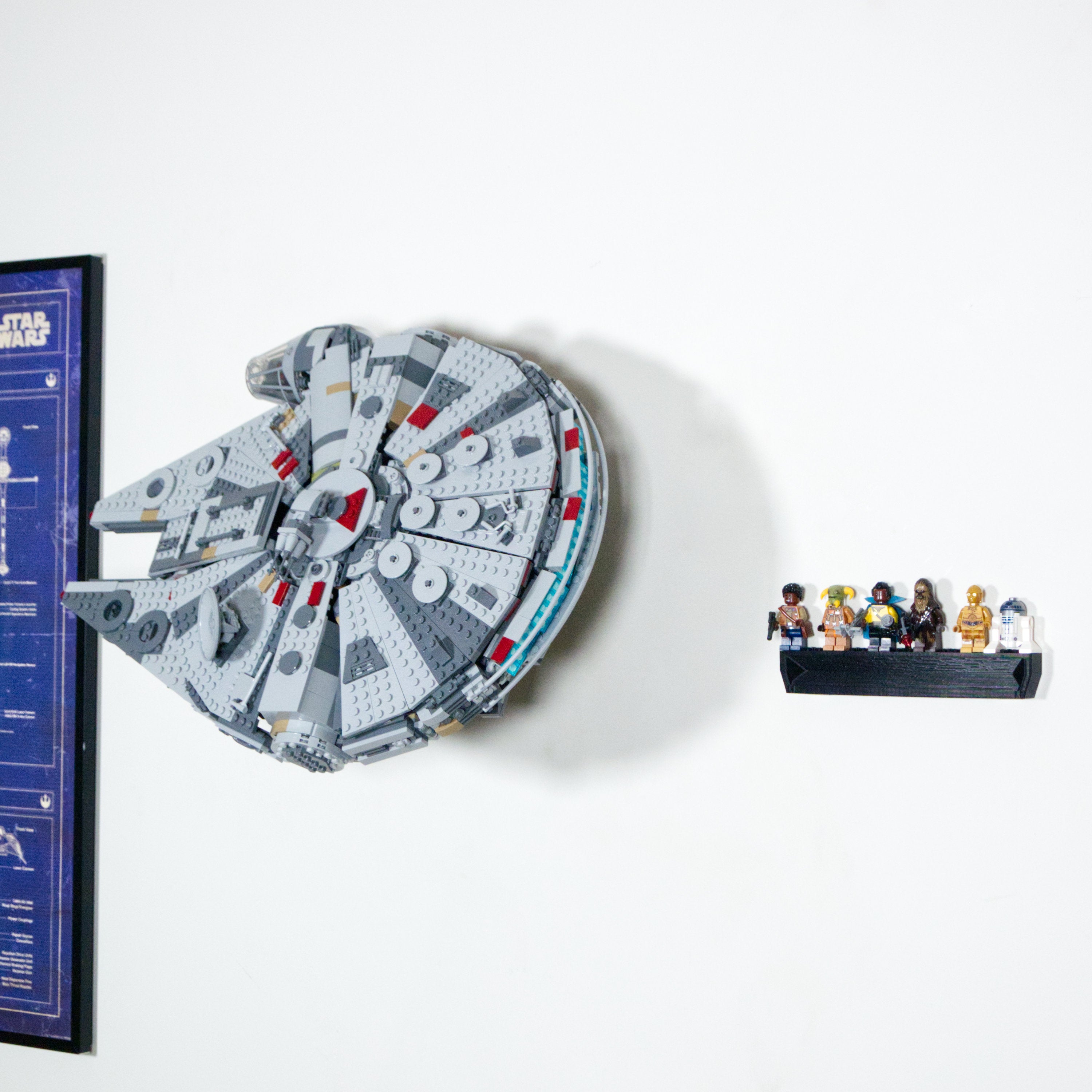 Frigör hyllutrymme genom att hänga din LEGO Millennium Falcon på väggen. Detta väggfäste låter dig presentera rymdskeppet i 8 olika vinklar för ett unikt uttryck. En hållare för minifigurer medföljer, och lösningen passar set 75105, 75257 och 75389.