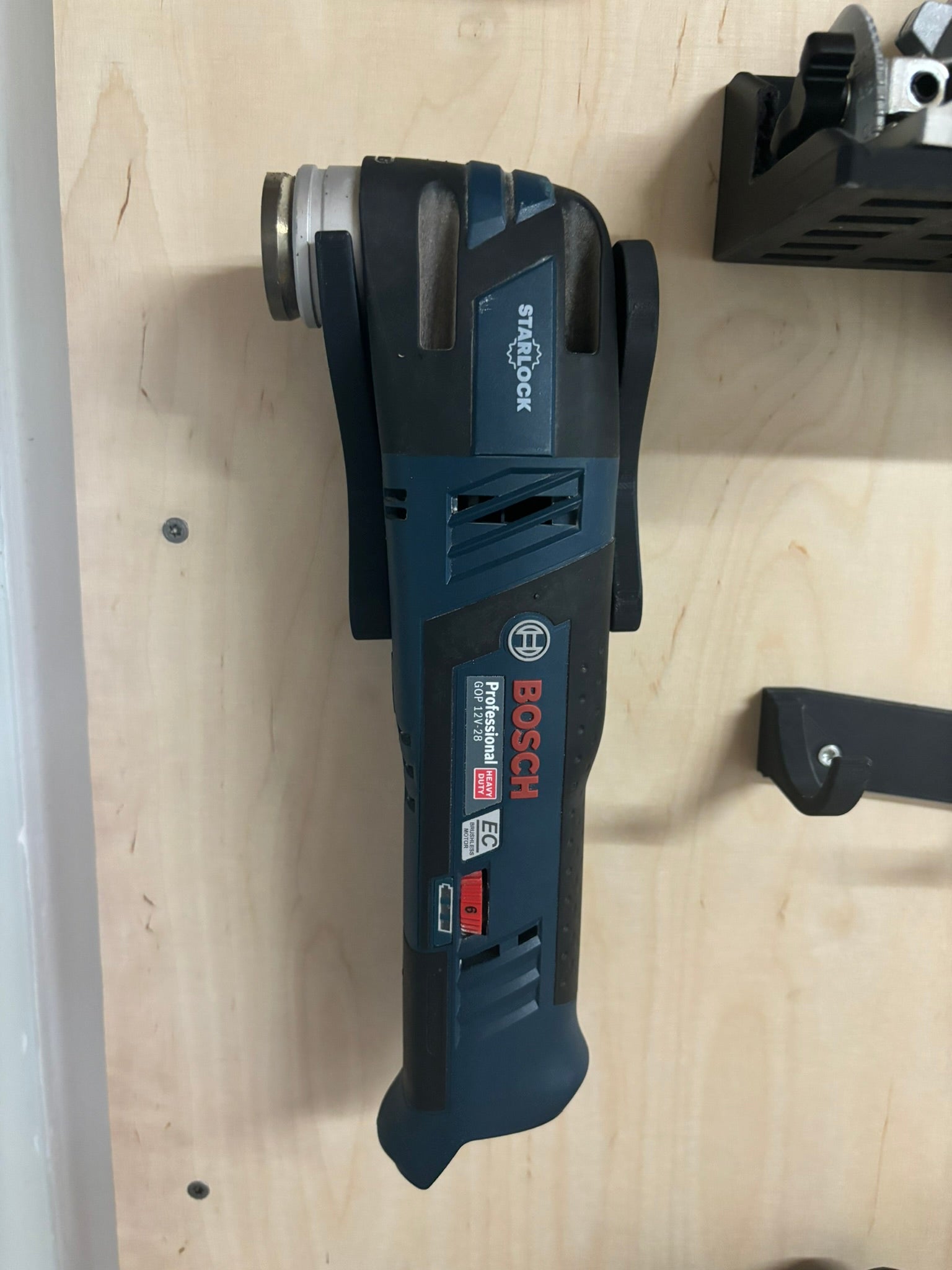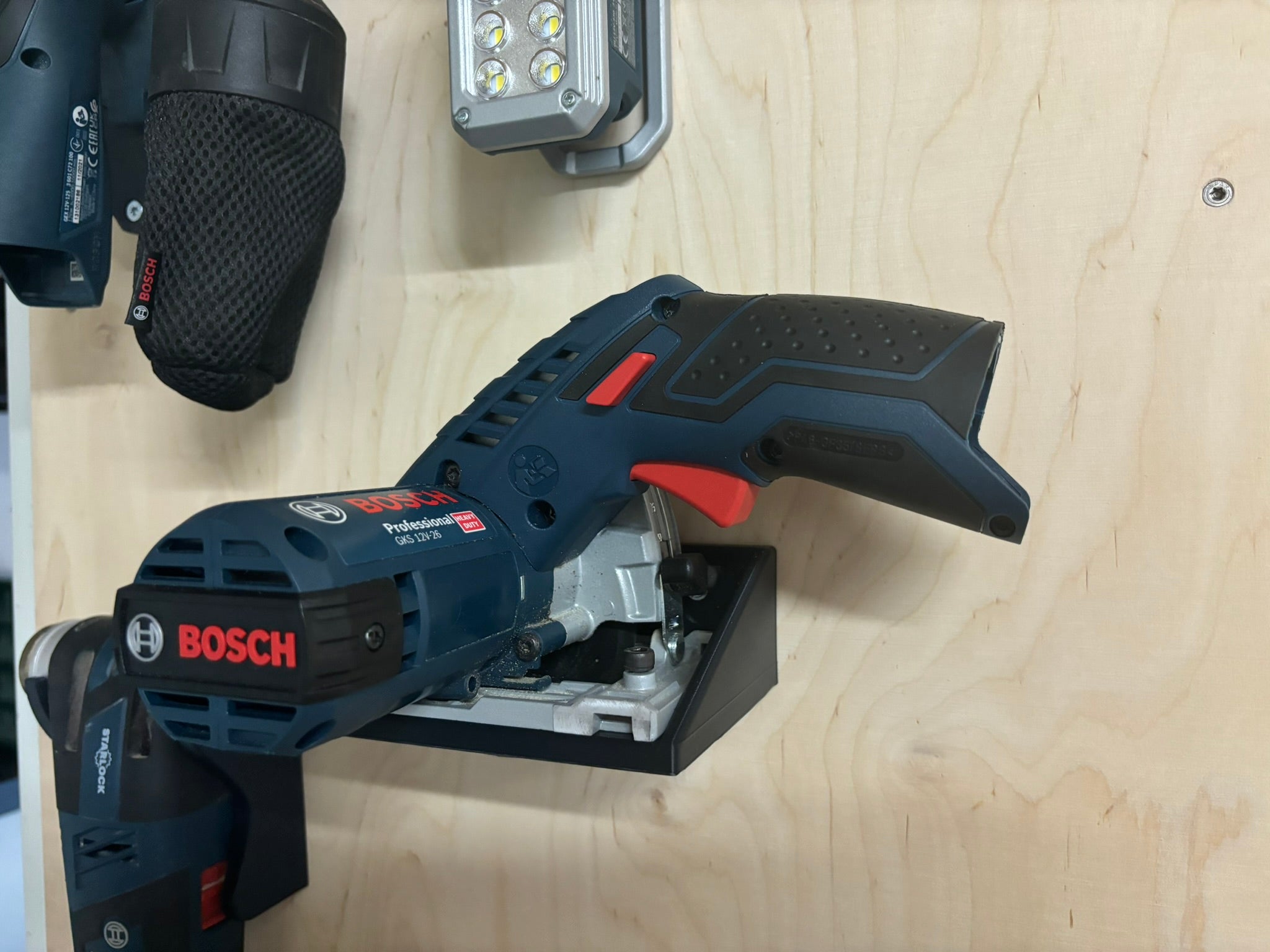 Få kontroll över dina Bosch 12V-verktyg med detta praktiska väggfäste, designat speciellt för att hålla dina batterier och elverktyg organiserade och lättillgängliga. Monteringsdesignen tillåter upp till fyra batterier, med plats för två 3,0Ah batterier till vänster och två 4,0Ah eller 6,0Ah batterier till höger. Dessutom är den kompatibel med modellerna GSR 12V-35 och GSR 12V-15, samt flera andra verktyg som GKS 12V-26, GOP 12V-28 och GEX 12V-125. Denna hållare är inte bara funktionell utan hjälper också till att hålla din arbetsyta snygg.