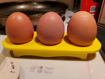 Den praktiska ägghållaren är utformad för att förvara upp till tre ägg säkert på din köksbänk. Den hjälper till att hålla äggen stabilt på plats så att de inte rullar runt eller faller av medan du lagar mat. Detta gör det lättare att komma åt äggen när du behöver dem, till exempel när de behöver komma till rumstemperatur. Hållaren erbjuder en organiserad och stabil förvaringslösning som diskret passar in i de flesta köksmiljöer.