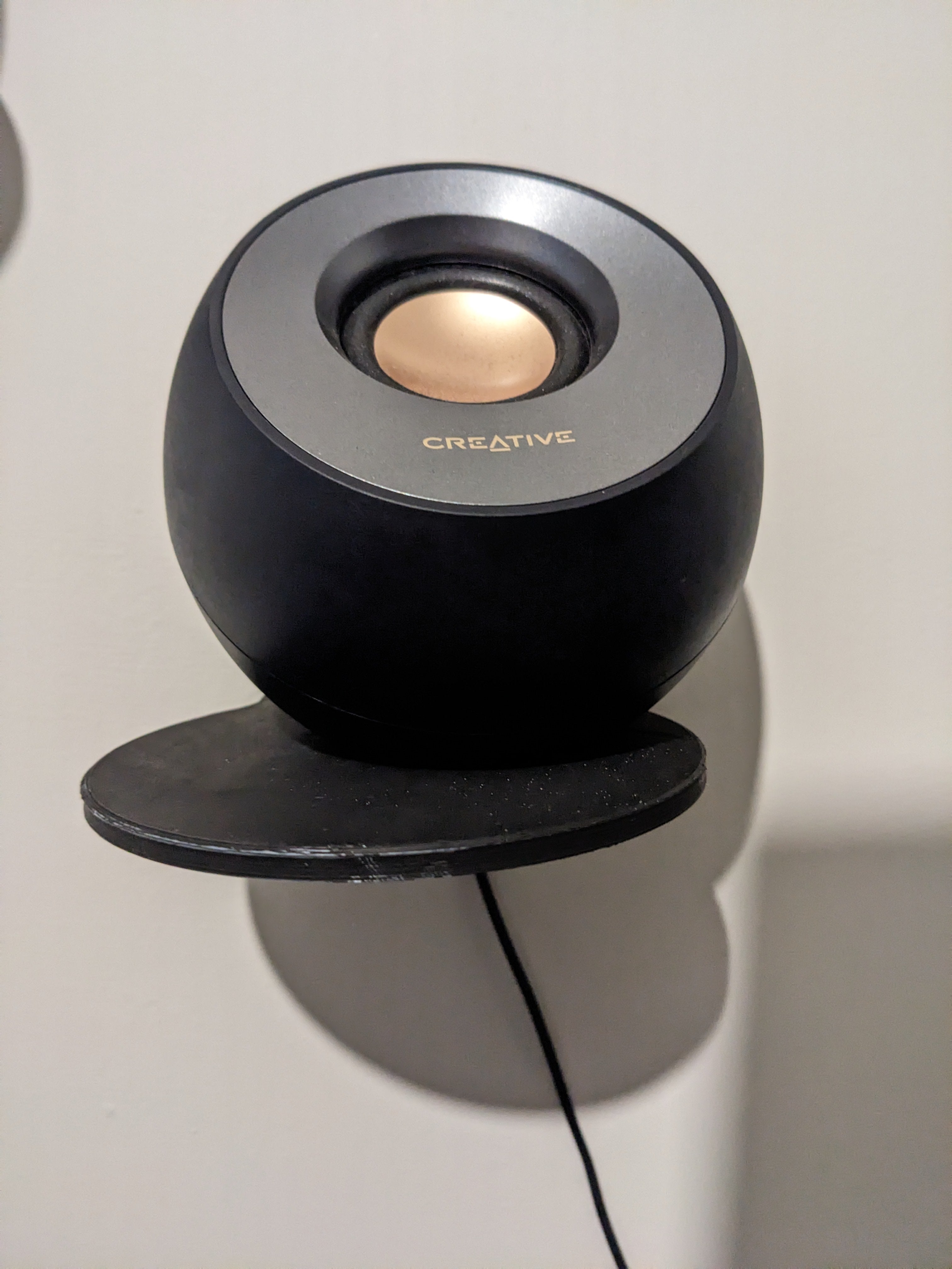 Denna kompakta vägghylla är utformad för att ge en praktisk förvaringslösning för små högtalare, såsom PC-högtalare eller andra små elektroniska enheter. Hyllans mångsidiga design gör den lämplig för en mängd olika ändamål i alla rum.