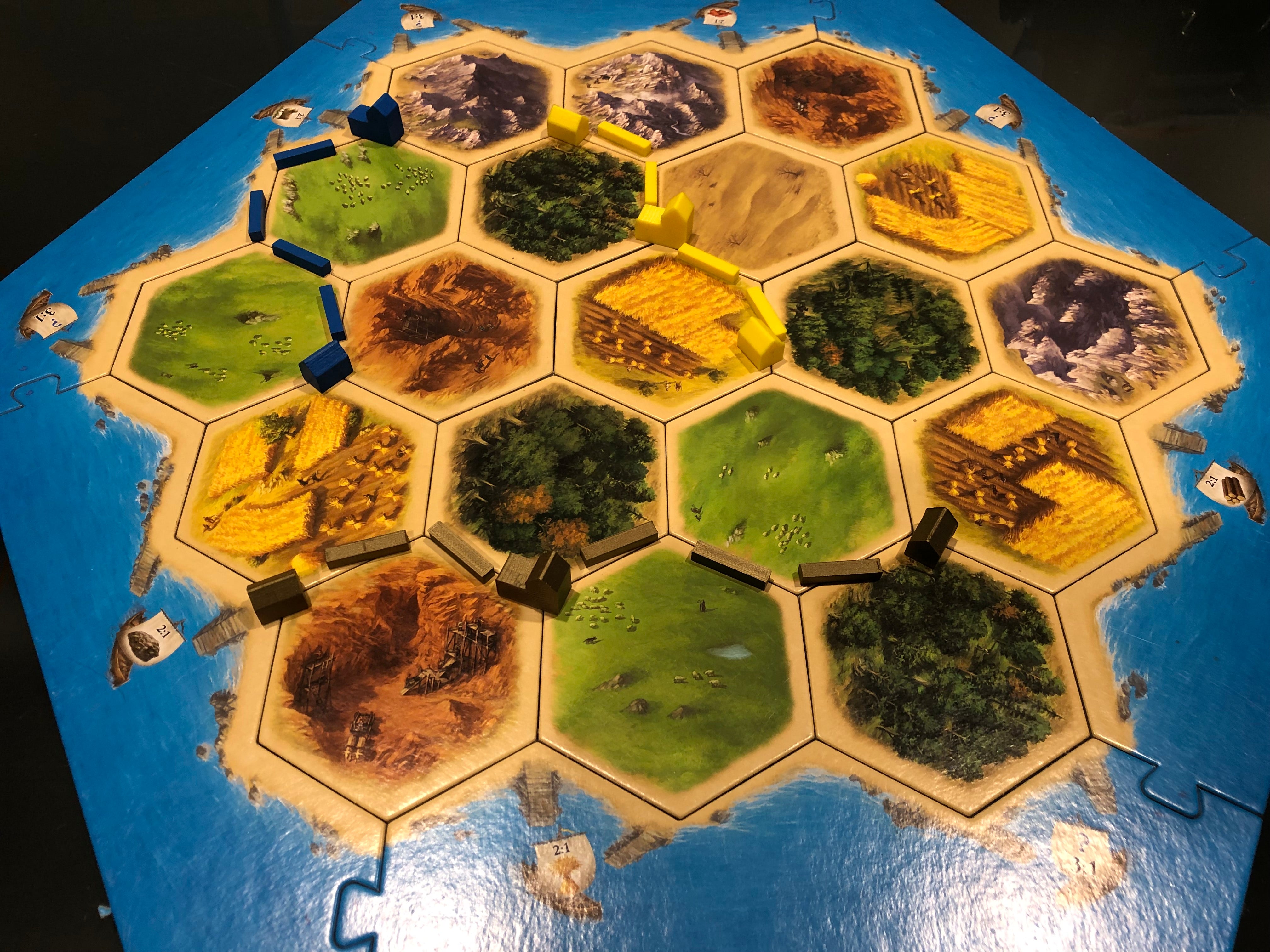 • Komplett uppsättning vägar, bosättningar och städer för Catan