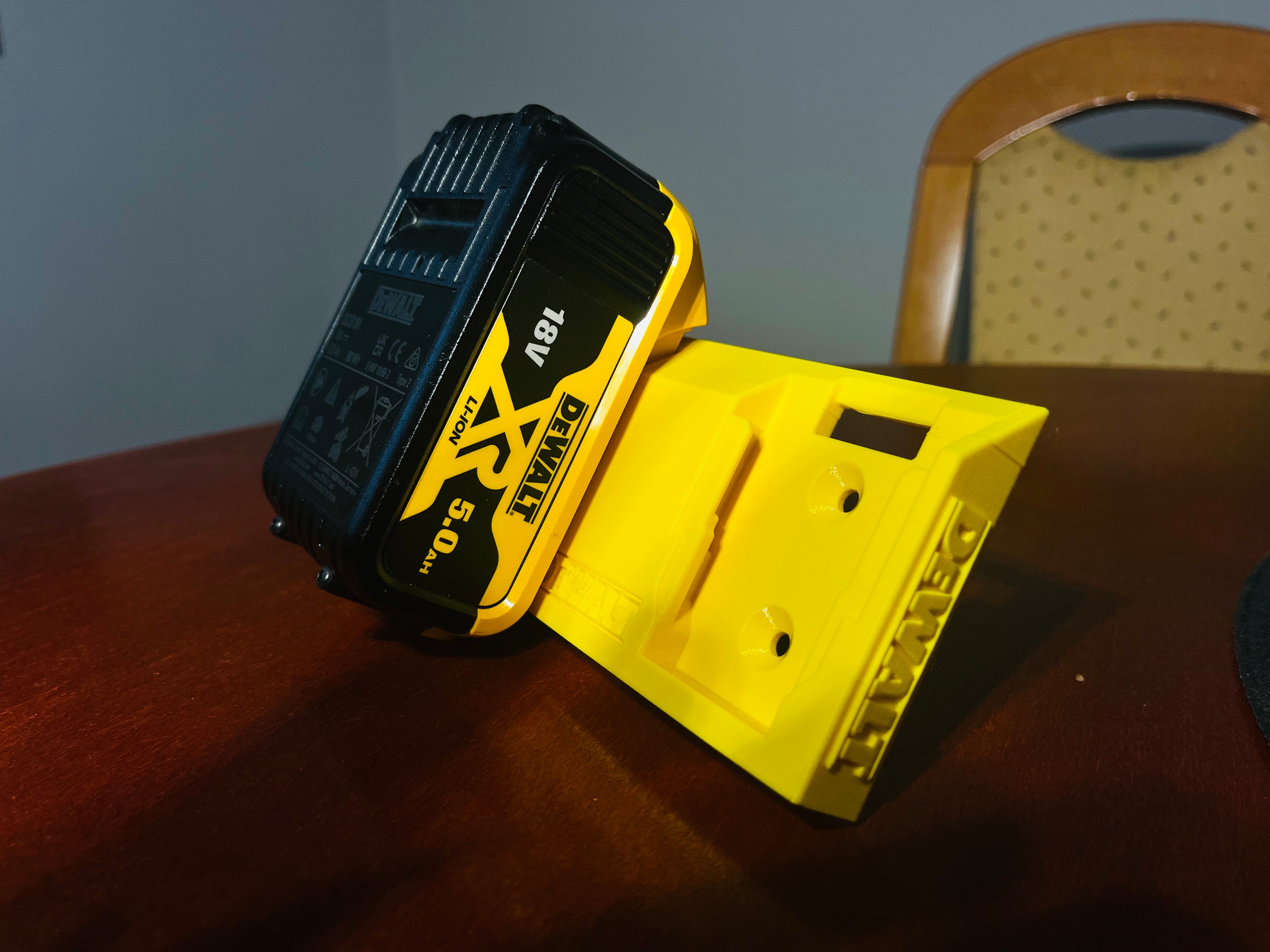- Plats för två DeWalt 18V-batterier