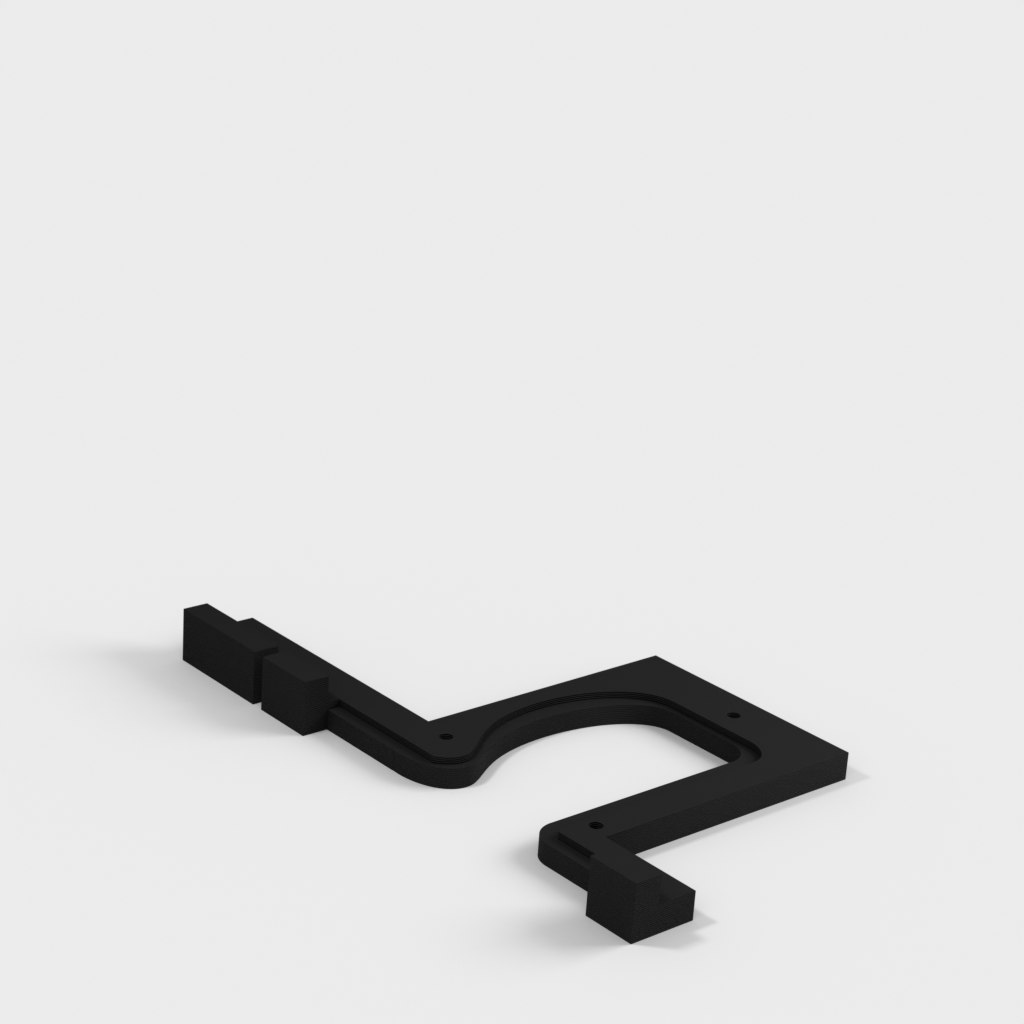 För bästa resultat rekommenderas att använda en fräs. Börja med att rita konturerna och göra ett grovt snitt, använd sedan fräsen för att slutföra snittet. Mallen kan diskret fästas med små skruvar på undersidan av gitarrstativets övre skena så att monteringshålen inte syns.