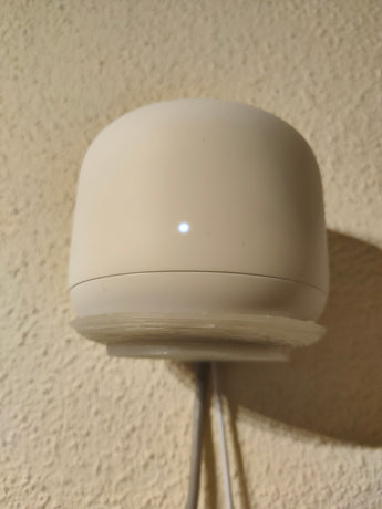 Väggfästet är utformat för att hålla din Google Nest Wifi säkert på plats. Det bidrar till ett rent och prydligt utseende genom att lyfta enheten från ytor och integrera den diskret i din inredning. Detta kan vara en fördel om du vill optimera placeringen av din Google Wifi för bättre täckning, samtidigt som du bibehåller en snygg och funktionell miljö.