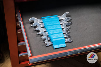 Denna förvaringslåda är utformad för att hålla din uppsättning små skiftnycklar prydligt organiserade och lättillgängliga. Den är idealisk för att förvara upp till sex skiftnycklar i storlekar från 6 mm till 17 mm. Oavsett om du föredrar att förvara dina verktyg i en verktygslåda eller ha dem nära till hands på ett skrivbord, passar denna förvaringslåda perfekt. För att ge extra stabilitet och förhindra förskjutning finns det också plats i botten för två magneter (20 x 10 x 2,5 mm). Denna lösning bidrar till en mer ordnad och effektiv arbetsyta, där du enkelt kan hitta rätt verktyg när du behöver det.