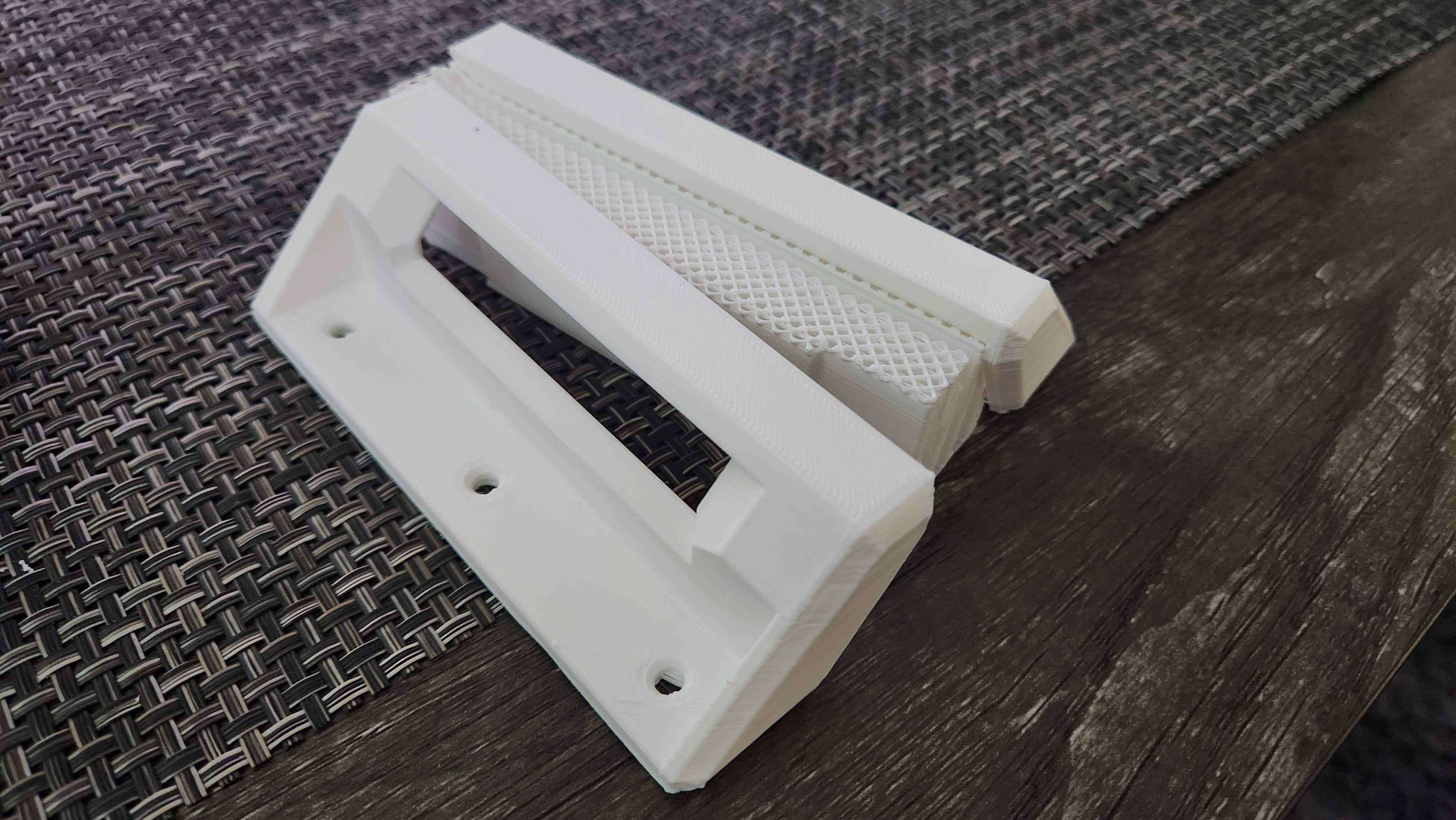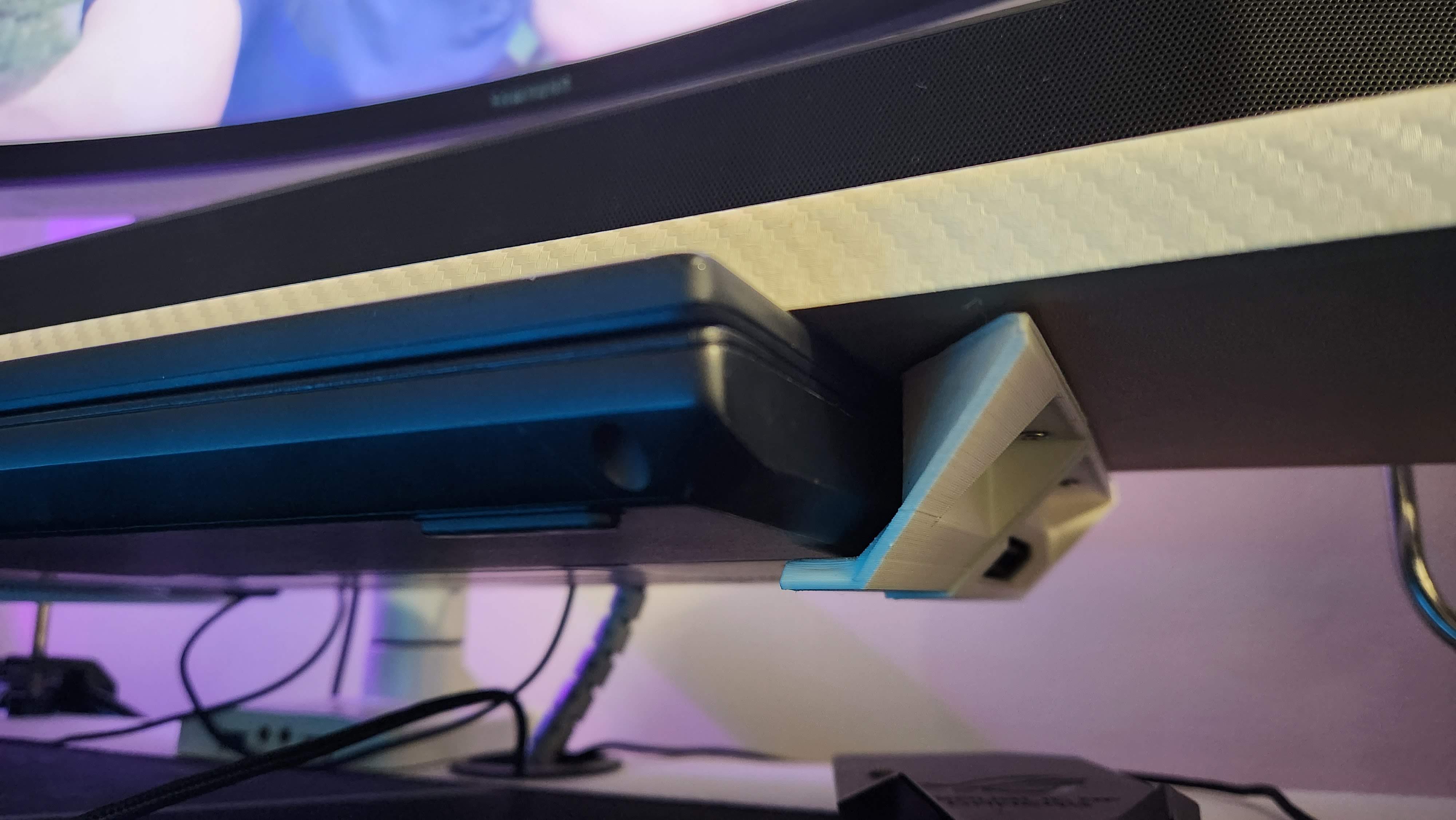För att säkerställa full funktionalitet är fästet utformat i två separata sektioner, vilket ger obehindrad åtkomst till den bärbara datorns USB-portar på sidan. Den konturerade formen följer den bärbara datorns sidoprofil, och integrerade stödribbor ökar styvhet och stabilitet. Ett inbyggt stopp förhindrar att den bärbara datorn av misstag glider ur fästet när den är monterad.