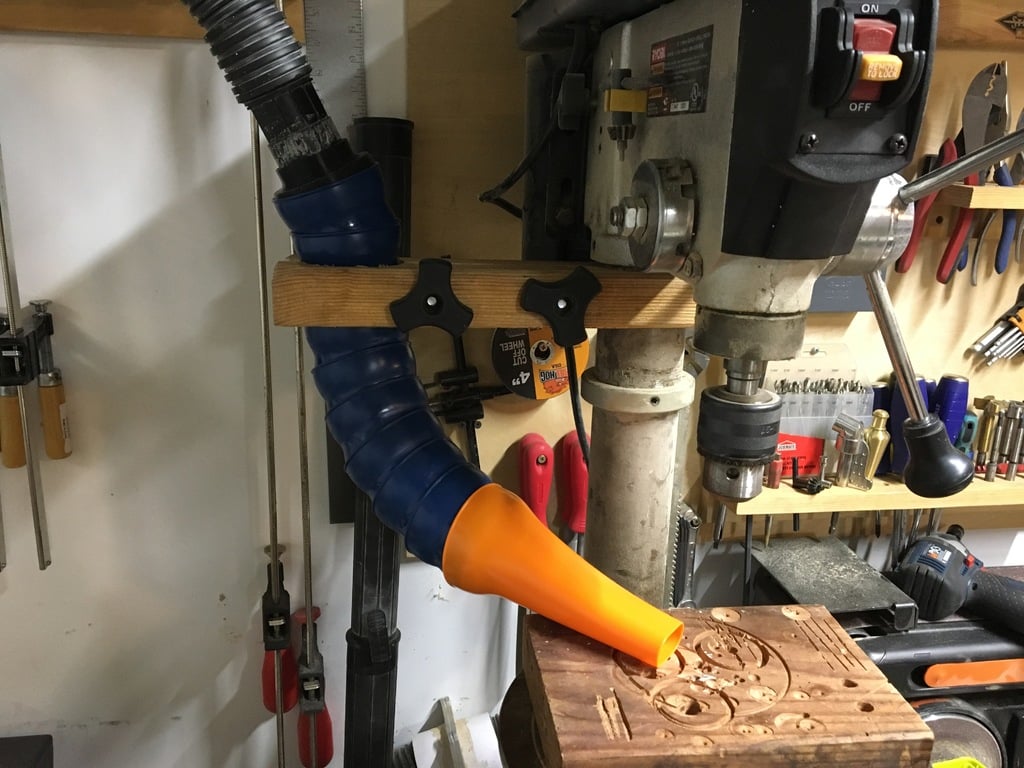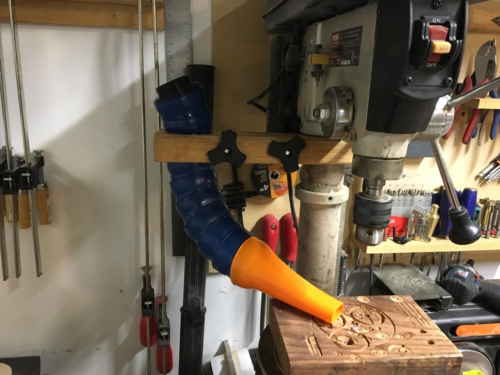 Dammsugarkopplingen är utformad för att skapa en robust och justerbar anslutning mellan ditt 2-1/2" Loc-Line-system och en vanlig 2" verkstadsdammsugare. Denna koppling är idealisk för att uppnå effektiv dammuppsamling direkt vid källan, till exempel vid arbete med en borrpress. Genom att säkerställa en tät och stabil anslutning bidrar kopplingen till en betydligt renare arbetsmiljö och förbättrad luftkvalitet i din verkstad. Den koniska invändiga designen säkerställer att din dammsugarslang (med en ytterdiameter på cirka 44-46 mm) är ordentligt fastsatt, men ändå enkel att ta bort efter användning. Detta optimerar sugförmågan och håller din arbetsyta fri från spån och damm, vilket förbättrar både säkerheten och precisionen i ditt arbete med elverktyg.