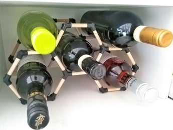 Detta modulära vinställ erbjuder en smart och flexibel lösning för förvaring av vinflaskor. Systemet består av kopplingar designade för användning med 10 mm stänger, vilket ger dig friheten att bygga stället exakt efter dina behov och det utrymme du har tillgängligt. Varje modul är konstruerad med sexkantiga kopplingar som säkerställer stabilitet och enkel montering. Med ett rekommenderat avstånd på 150 mm mellan raderna kan vinflaskor förvaras säkert och enkelt, oavsett om du väljer två eller tre rader för att maximera kapaciteten. Detta vinställ ger ett organiserat och snyggt sätt att visa upp din vinsamling.