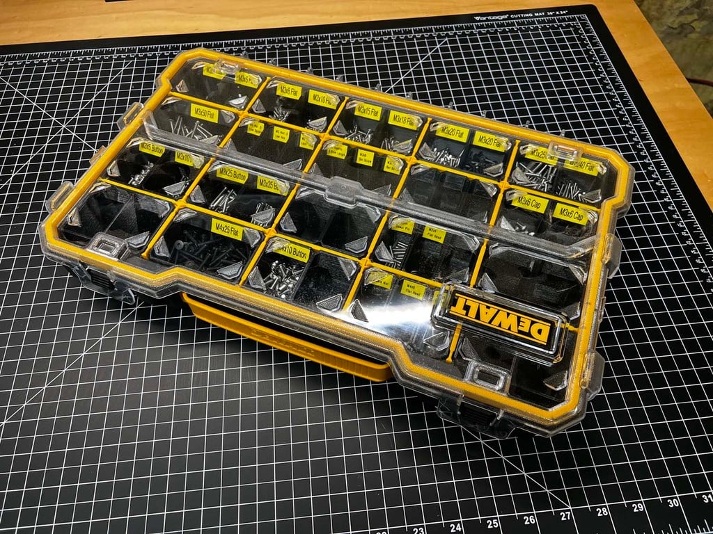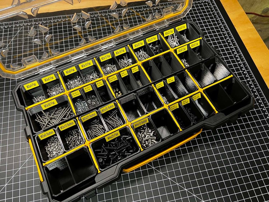 Dessa modulära förvaringslådor är skapade för att optimera organiseringen av smådelar i din verkstad och är specifikt utformade för att passa i DeWalts Pro Small Parts Organizer med 10 eller 20 fack, där de kan öka din förvaringskapacitet för skruvar, bultar och andra små komponenter med upp till två till tre gånger.