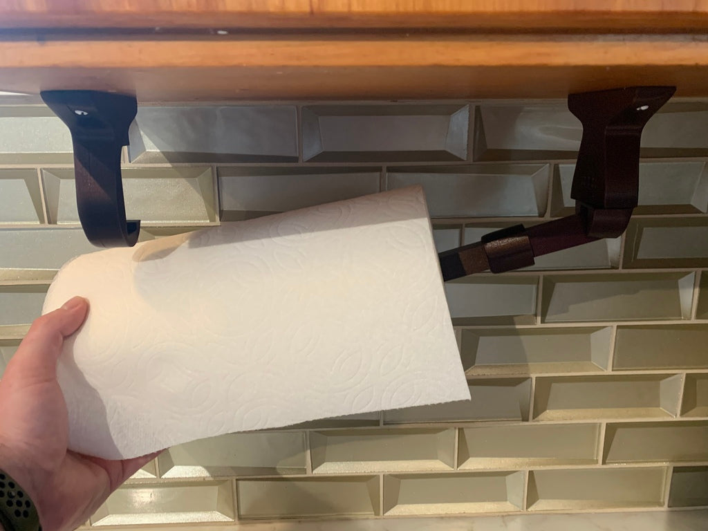 Denna praktiska pappershanddukshållare är utformad för att optimera utrymmet i ditt kök eller tvättstuga. Den kan diskret monteras under ett skåp , men fungerar även effektivt som en väggmonterad lösning om det passar din inredning bättre. Hållarens smarta svängarm gör det enkelt att fylla på med nya pappershanddukar, vilket säkerställer snabb och problemfri åtkomst när du behöver en handduk.