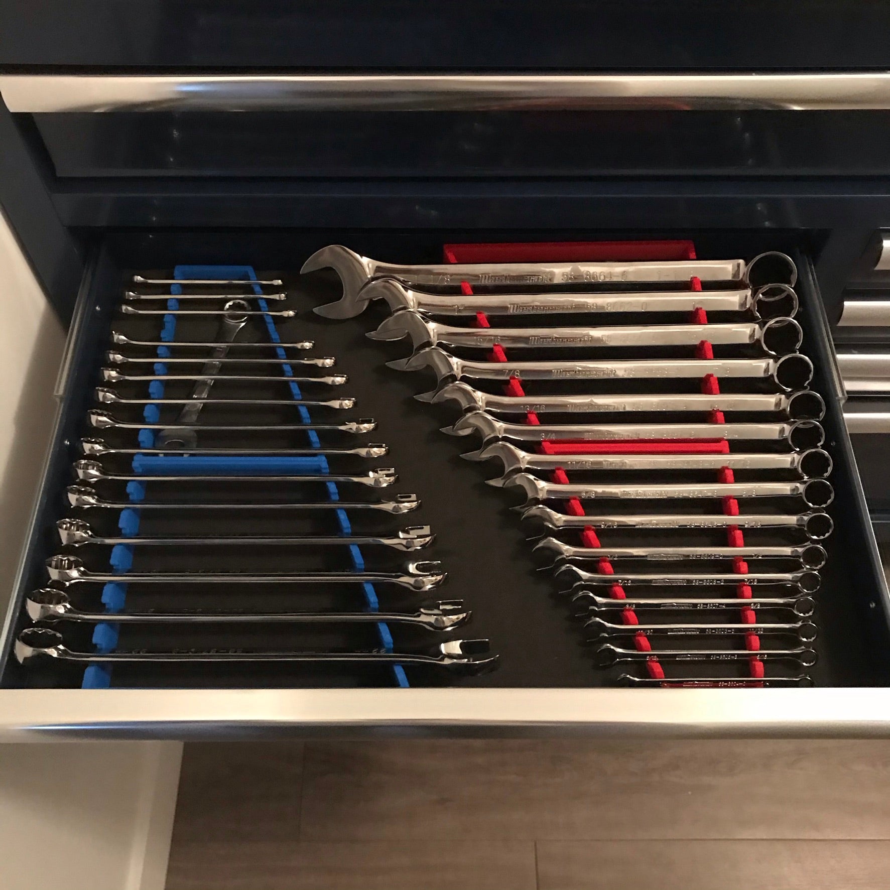 Med en kapacitet för 16 metriska skiftnycklar (från M7 till M22) och 15 tumskiftnycklar (från 1/4 tum till 1-1/8 tum) täcker detta organiseringsset de vanligaste storlekarna du kan behöva. Det är en idealisk lösning för att skapa en mer effektiv och prydlig arbetsplats, oavsett om du är en professionell hantverkare eller en entusiastisk gör-det-självare.