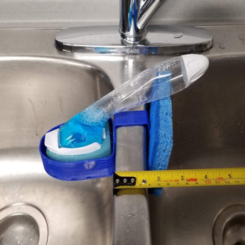 Denna praktiska hållare hjälper dig att hålla ordning i din diskbänk. Den är utformad för att hålla både en svamp och en svampborste, så att dina rengöringsredskap alltid finns inom räckhåll och kan torka ordentligt. Hållaren är lämplig för diskbänkar med en central skiljevägg på cirka 3,8 cm (1,5 tum) bred. För optimal stabilitet och funktionalitet krävs lim för att montera hållaren.