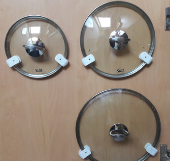 Denna innovativa lockhållare är utformad för att skapa ordning och optimera utrymmet i ditt kök. Har du ofta problem med att hitta plats för dina kastrull- och stekpannlock, eller rör de upp dina lådor? Med denna smarta lösning kan du enkelt montera dina lock på insidan av ett köksskåp, vilket frigör värdefullt utrymme i lådor och skåp.