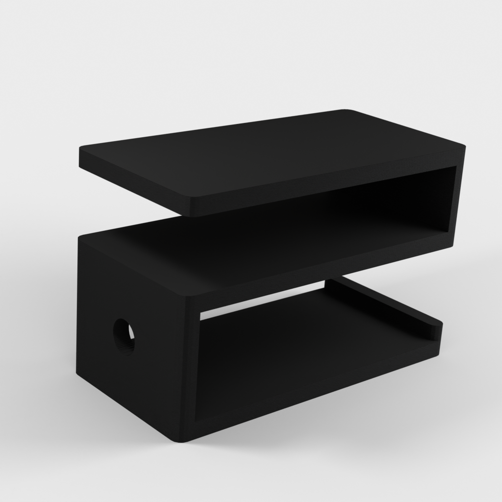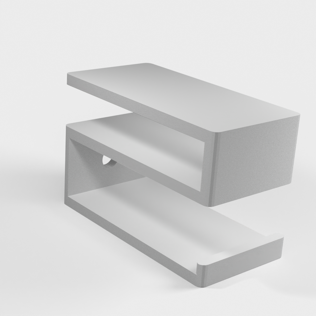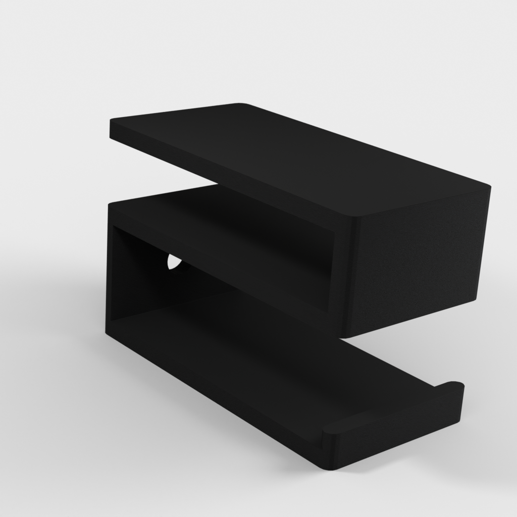Denna skrivbordskrok erbjuder en praktisk lösning för att förvara dina hörlurar och organisera kablar på din arbetsplats. Den är utformad för att monteras diskret under eller på kanten av ditt skrivbord, vilket frigör värdefullt utrymme. Kroken har ett dedikerat fäste för hörlurskabeln, vilket håller dem säkert på plats och skyddar dem från slitage. Dessutom finns det ett integrerat hål som effektivt leder hörlurskabeln, vilket håller den prydlig och lättåtkomlig utan att skapa oreda. Denna hållare är idealisk för att skapa ett mer organiserat och funktionellt skrivbord, oavsett om det är på hemmakontoret, i spelmiljön eller på jobbet.
