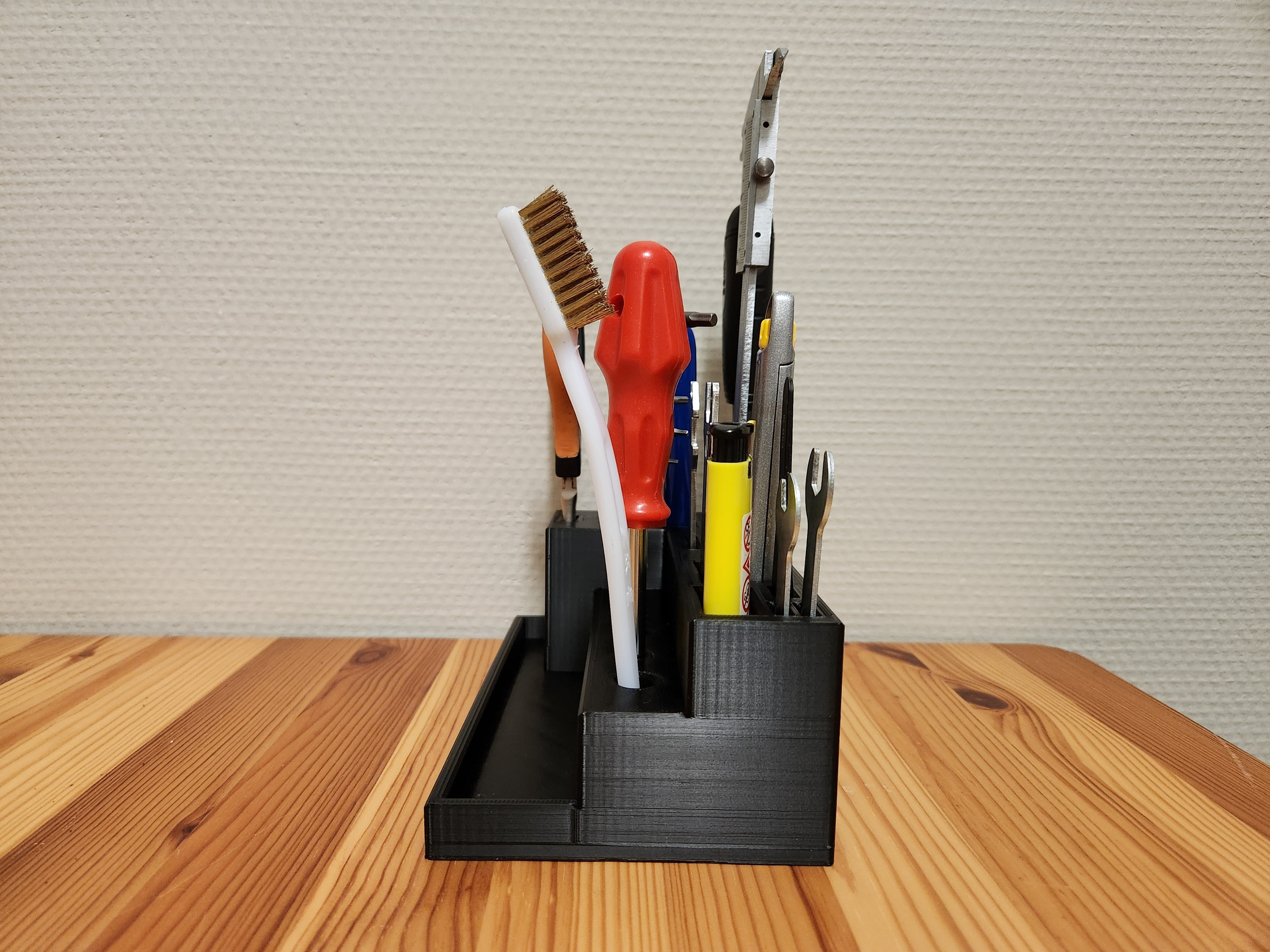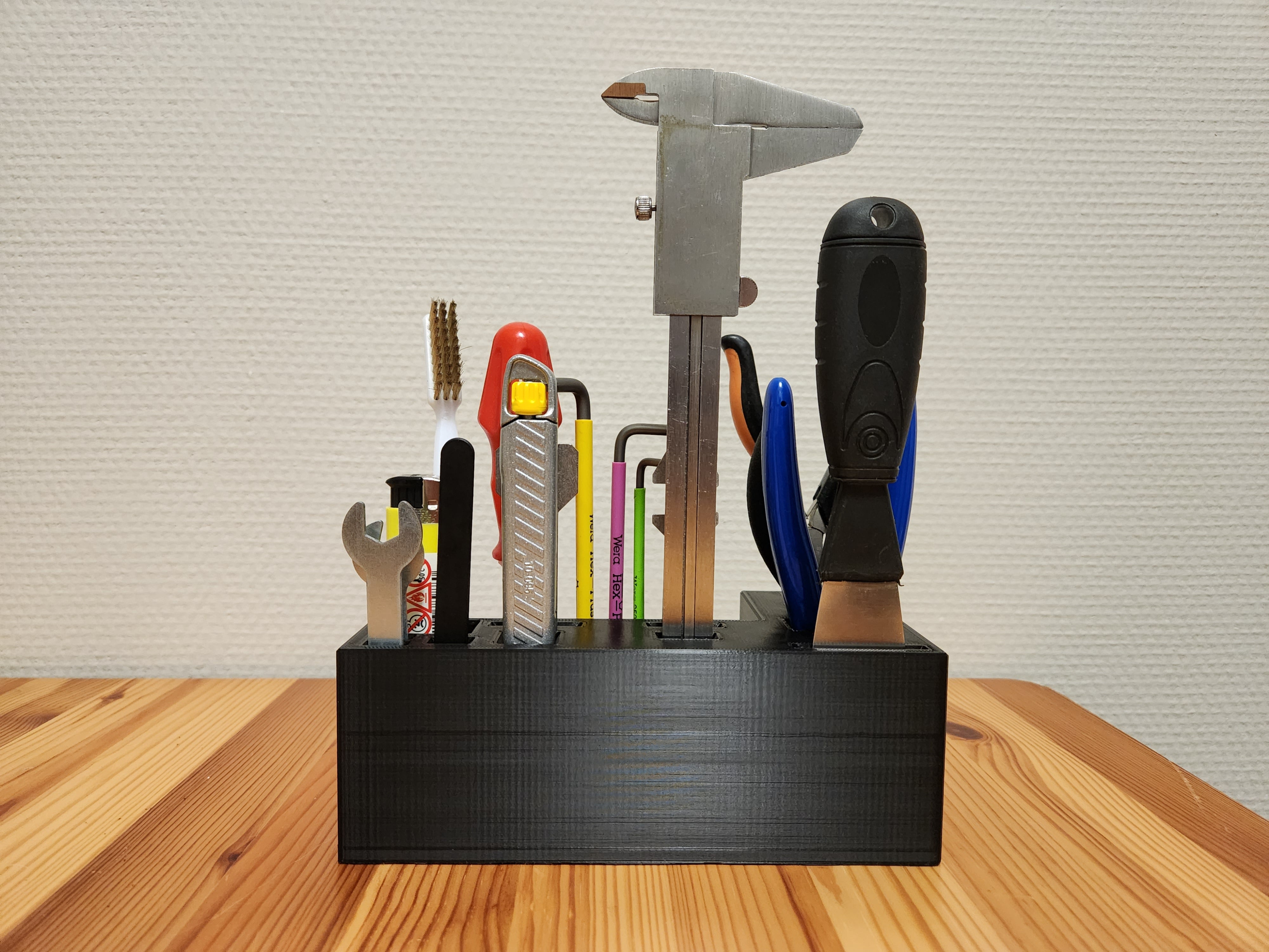 Denna verktygshållare är utformad för att ge en snygg förvaringslösning för dina viktiga 3D-skrivarverktyg och hjälper till att hålla din arbetsyta snygg och organiserad, så att du enkelt hittar den utrustning du behöver under utskrift eller underhåll.