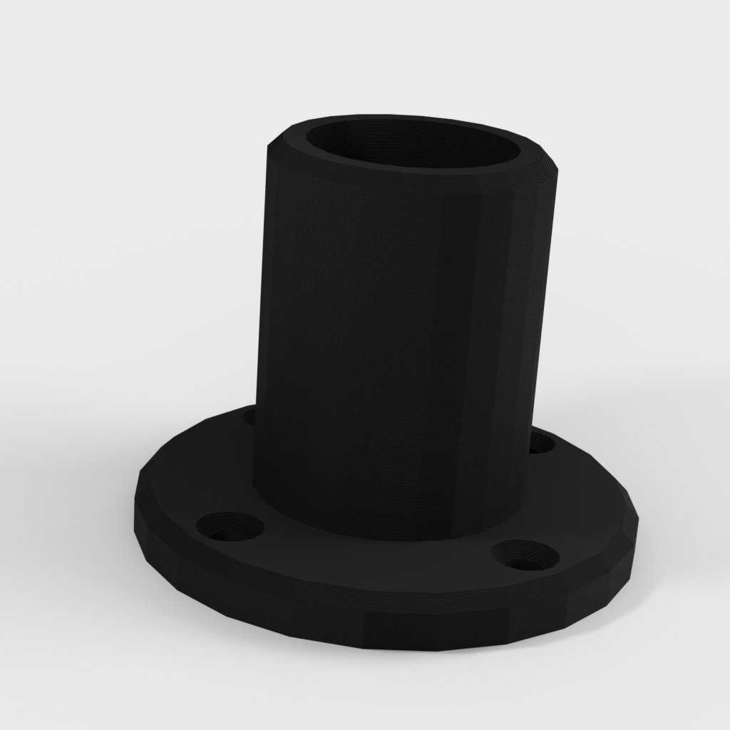 Detta PVC-rörfäste är utformat för att underlätta konstruktionen av specialanpassade högtalarstativ. Fästet passar standard 3/4" PVC-rör och ger en solid anslutning där högtalaren kan monteras på en plan yta med fyra försänkta skruvar.